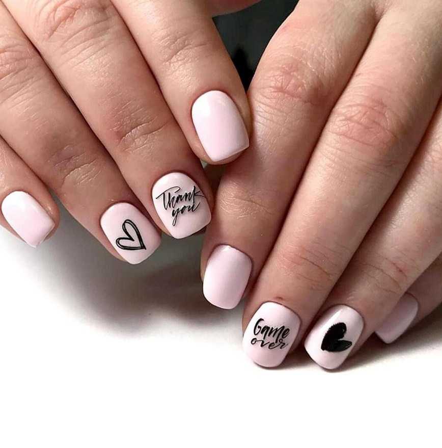 Сейчас модницы предпочитают делать молодёжный маникюр с надписями – романтичными и дерзкими. Ещё одно хорошее решение – минималистичные, консервативные фразы, которые не противоречат даже офисному дресс-коду
