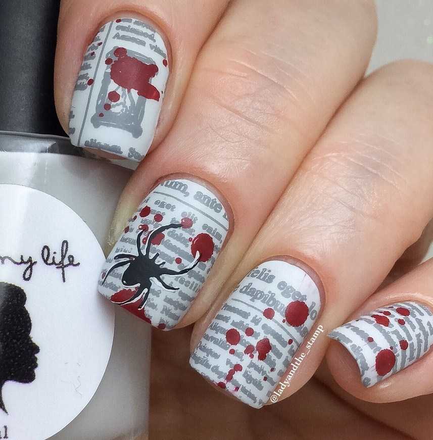 Матовый. Нежный бархатный маникюр с броскими и даже вызывающими надписями на ногтях — хит сезона. В моде, как нарисованные, так и печатные надписи в виде газетных вырезок. Что до цветовой палитры, с матовым топом гармоничнее всего в таком дизайне будет смотреться насыщенный оттенок винного, бордового и хаки.