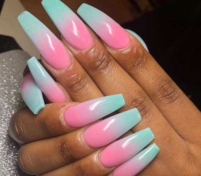 Омбре на длинных ногтях