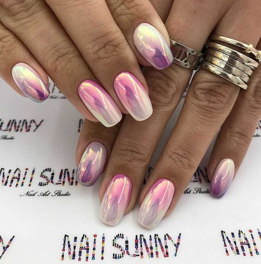 Модными будут все оттенки розового. Этот романтичный и беззаботный цвет хорошо сочетается с шиммером, камушками, фольгой и другими материалами.