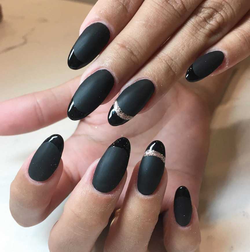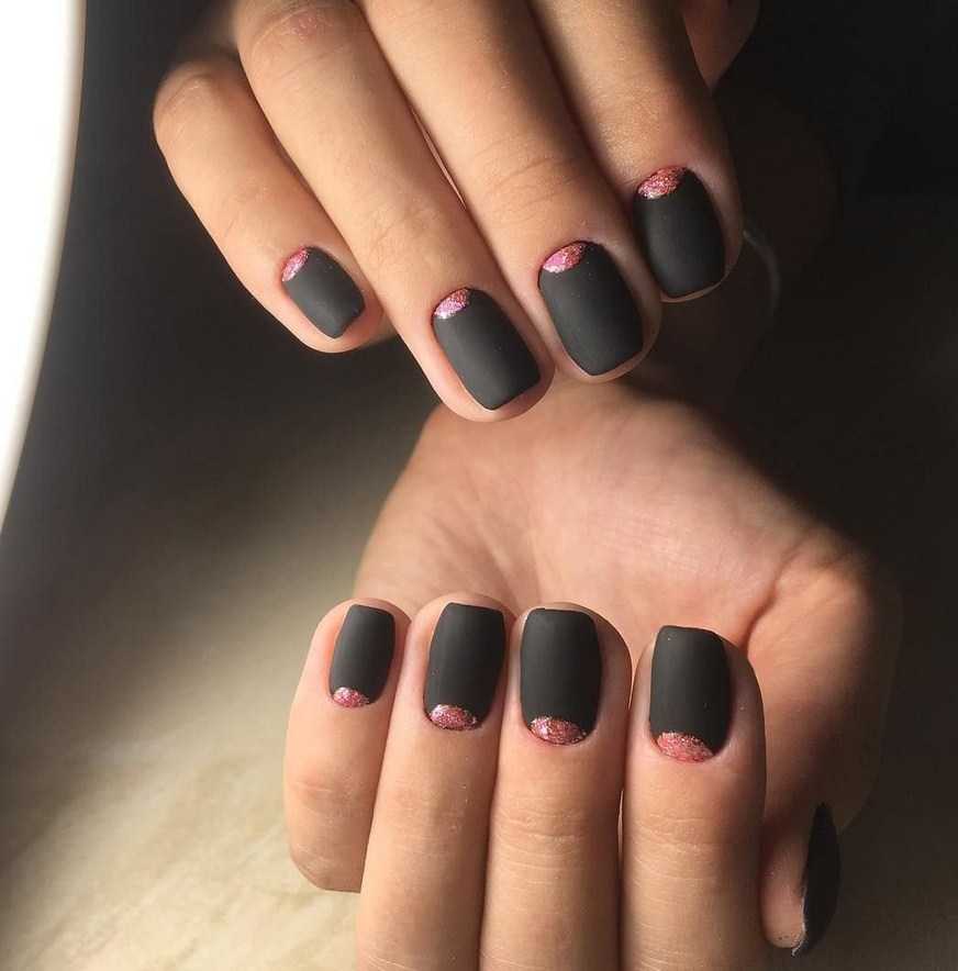 Очень красиво смотрится глиттерная растяжка от кончика ногтевой пластины к середине основания и обратный вариант. Первый пример можно смело использовать в качестве разновидности френча. Второй – как одну из вариаций лунного дизайна.