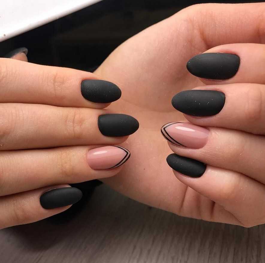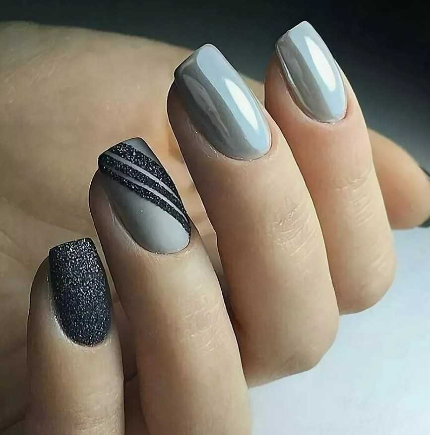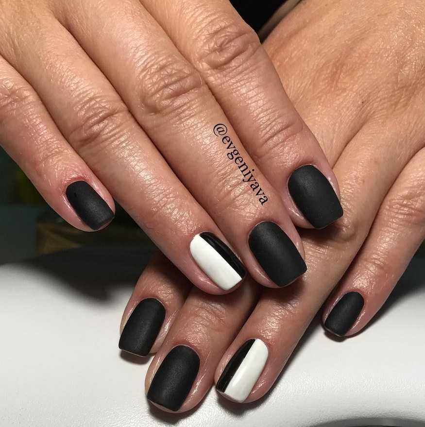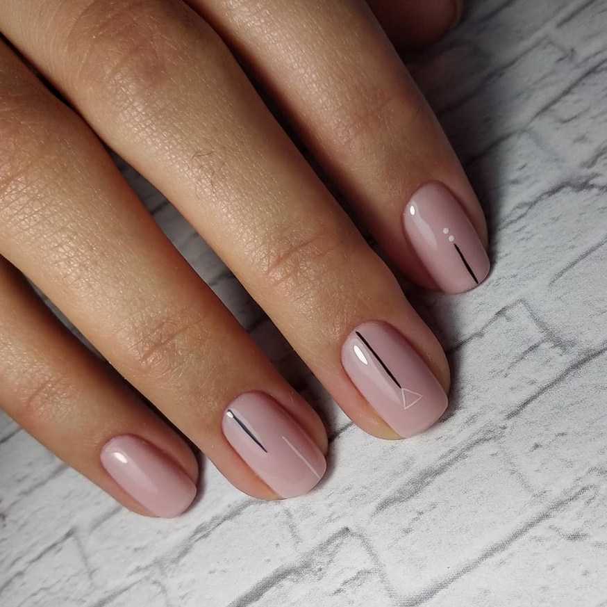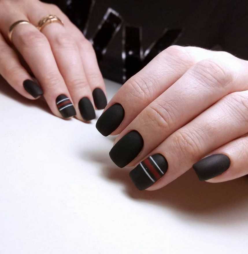 Такой маникюр тоже считается геометрическим. Однако, если все же выбрано это направление, полосы должны быть контрастными. Лучше, если рисунок будет выполнен черно-белой краской. Такое покрытие поможет скрыть имеющиеся дефекты на ногтях. Кроме того, она украсит маленькие ноготки.