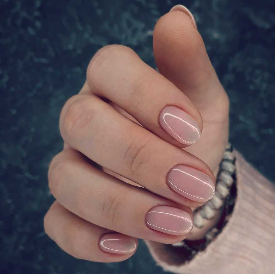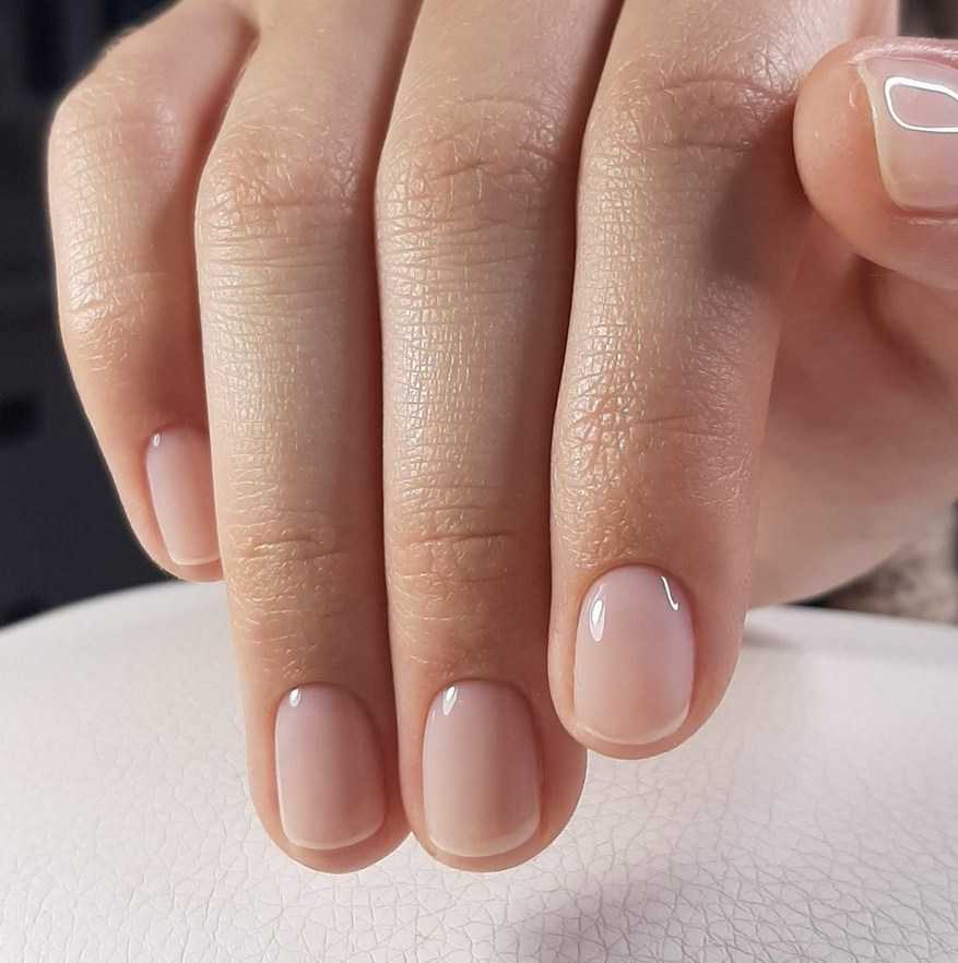 Такой маникюр тоже может выглядеть очень эффектно. Для этого нужно приобрести лак с подтоном, который будет ближе к ногтевой пластине. Это может быть бежевый или голубоватый пигмент. Но также можно сделать покрытие гель-лаком, что позволит дольше сохранить привлекательный вид маникюра.
