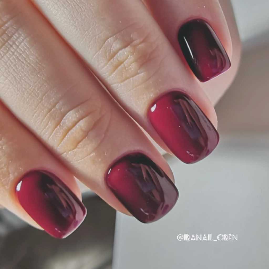 Нередко выбирают вишнёвый и чёрный цвет для создания эффектного, дерзкого градиента на длинных ногтях заострённой формы. Также обогащают вишнёвый цвет бронзовым, медным, золотым либо серебряным оттенком.