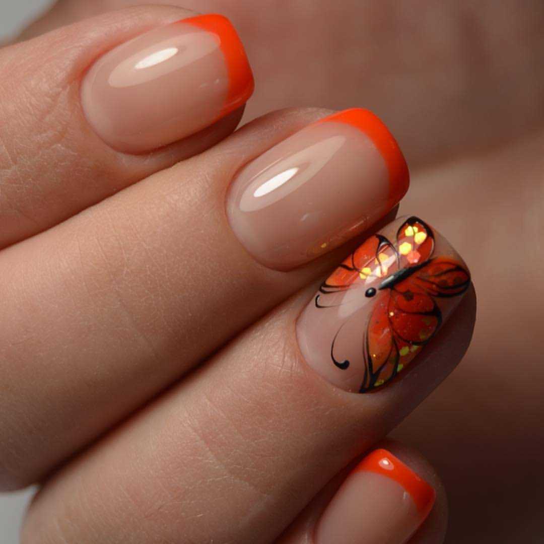 Летний маникюр френч с бабочками