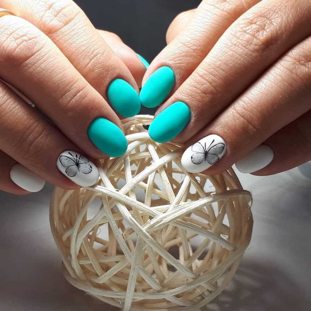 рисунок. Речь идет о рисунке, который мастер или сама модница наносят с помощью кистей и лаков. Нарисовать бабочку довольно просто. И если вы не обладаете навыками художника, рисунок может быть без деталей — схематичным. Это отличный вариант, если вы любите стиль минимализм;