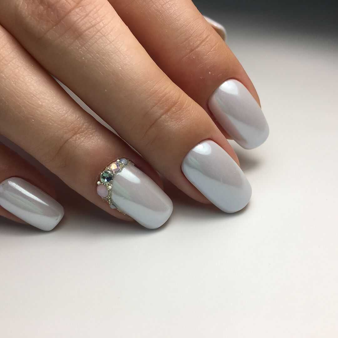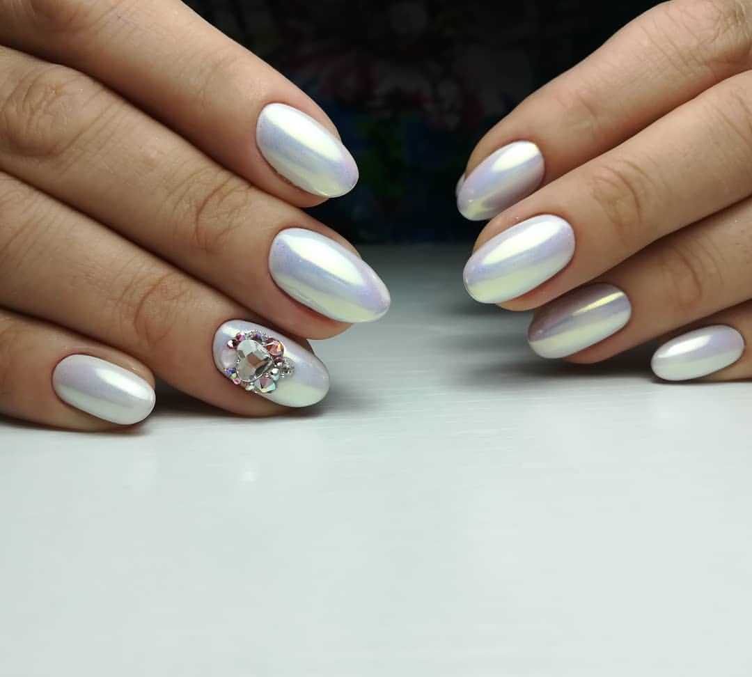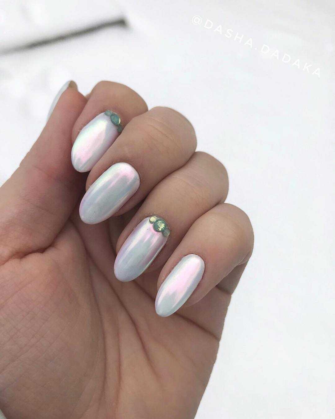 Эта разновидность пигмента создает на ногтях приятное мерцание, которое идеально подходит для маникюра на каждый день, к примеру френча или лунного дизайна. Также с жемчужной втиркой превосходно смотрится свадебный светлый маникюр или морской маникюр. Еще этот пигмент часто называют перламутровым. Он есть в коллекции NailTes, Irisk, Ingarden, Patrisa Nail и др. Если вы хотите сделать красивый белый маникюр с втиркой, то смело выбирайте эти бренды. Цена и качество примерно на уровне. Удивительно, но даже среди китайских втирок с aliexpress (алиэкспресс) можно найти неплохие варианты.