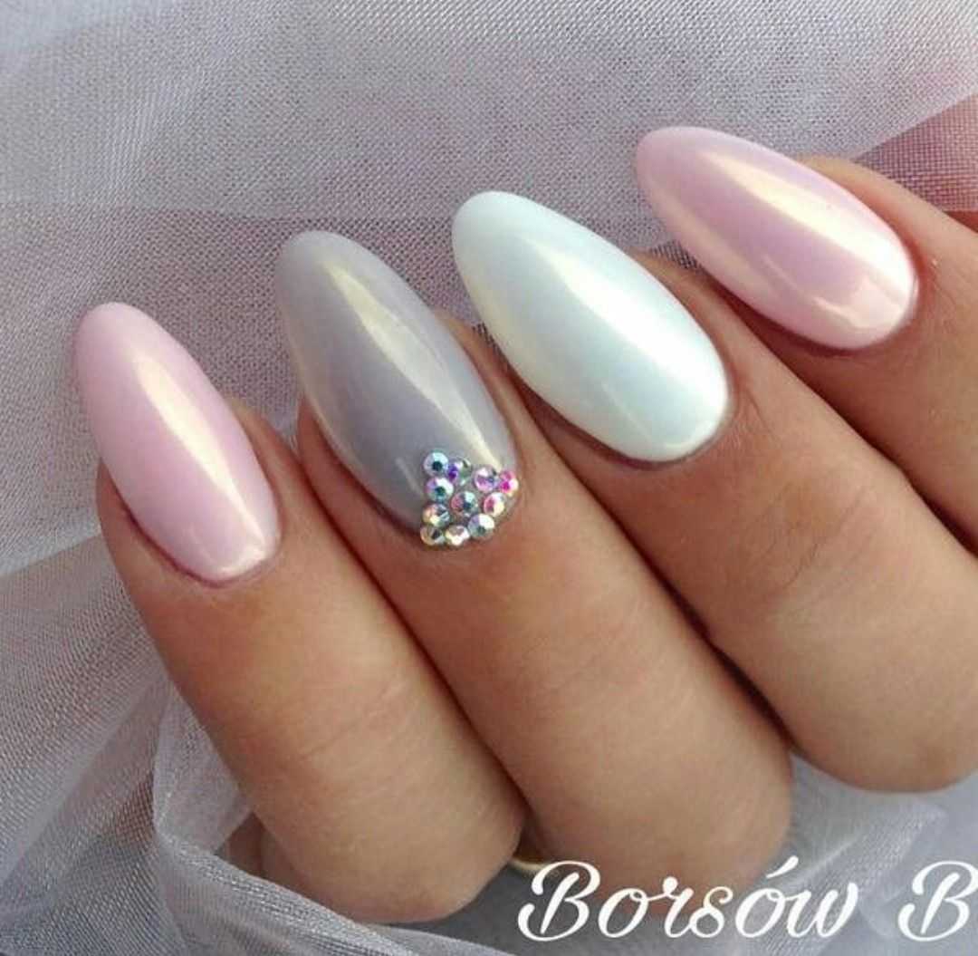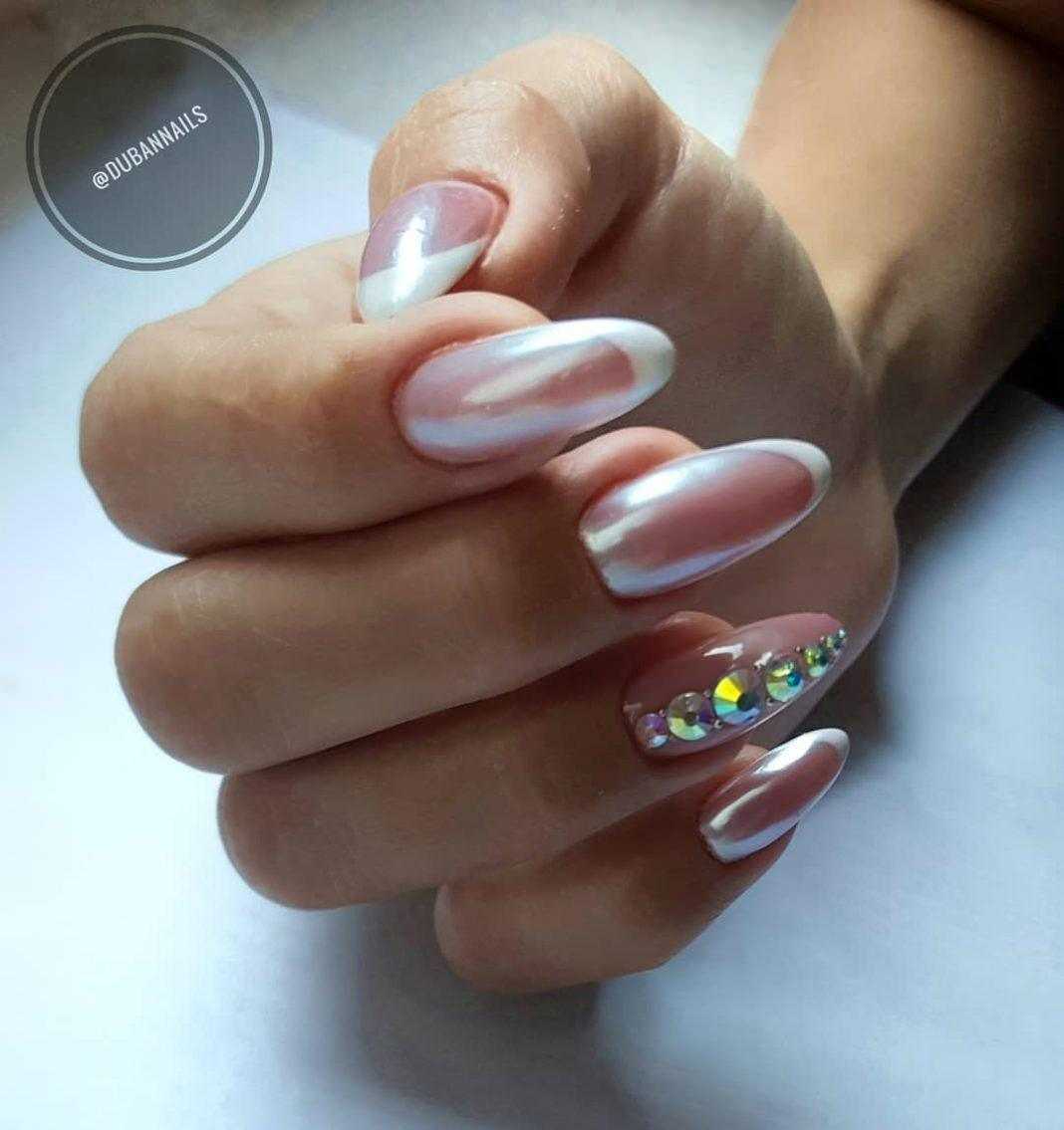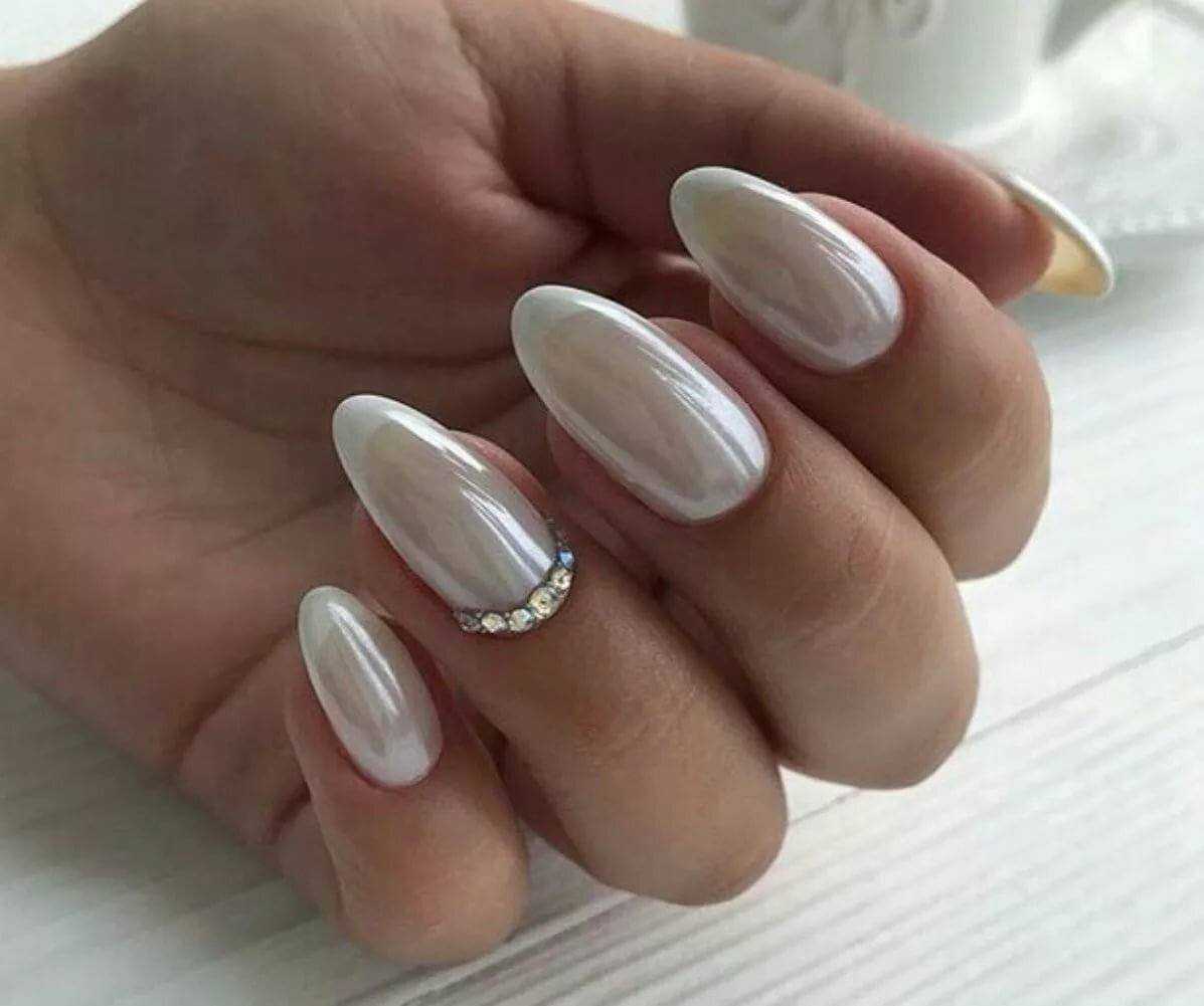 Эта разновидность пигмента создает на ногтях приятное мерцание, которое идеально подходит для маникюра на каждый день, к примеру френча или лунного дизайна. Также с жемчужной втиркой превосходно смотрится свадебный светлый маникюр или морской маникюр. Еще этот пигмент часто называют перламутровым. Он есть в коллекции NailTes, Irisk, Ingarden, Patrisa Nail и др. Если вы хотите сделать красивый белый маникюр с втиркой, то смело выбирайте эти бренды. Цена и качество примерно на уровне. Удивительно, но даже среди китайских втирок с aliexpress (алиэкспресс) можно найти неплохие варианты.