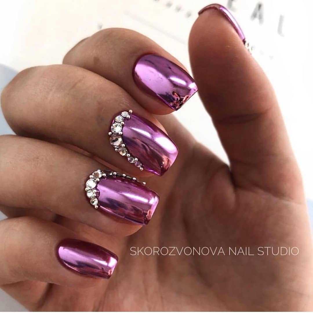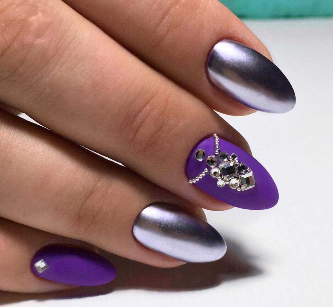 Фиолетовый маникюр со стразами. Фото из открытых источников