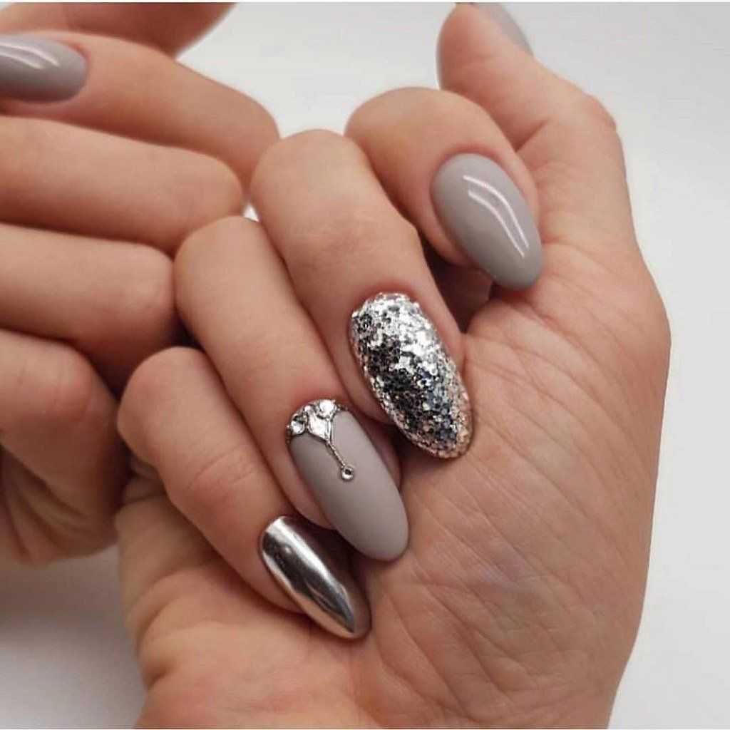 В дизайне можно использовать фольгу, нюд, глиттер, «негативное пространство» или матовый эффект для бархатных ногтей, популярных в 2019 году.