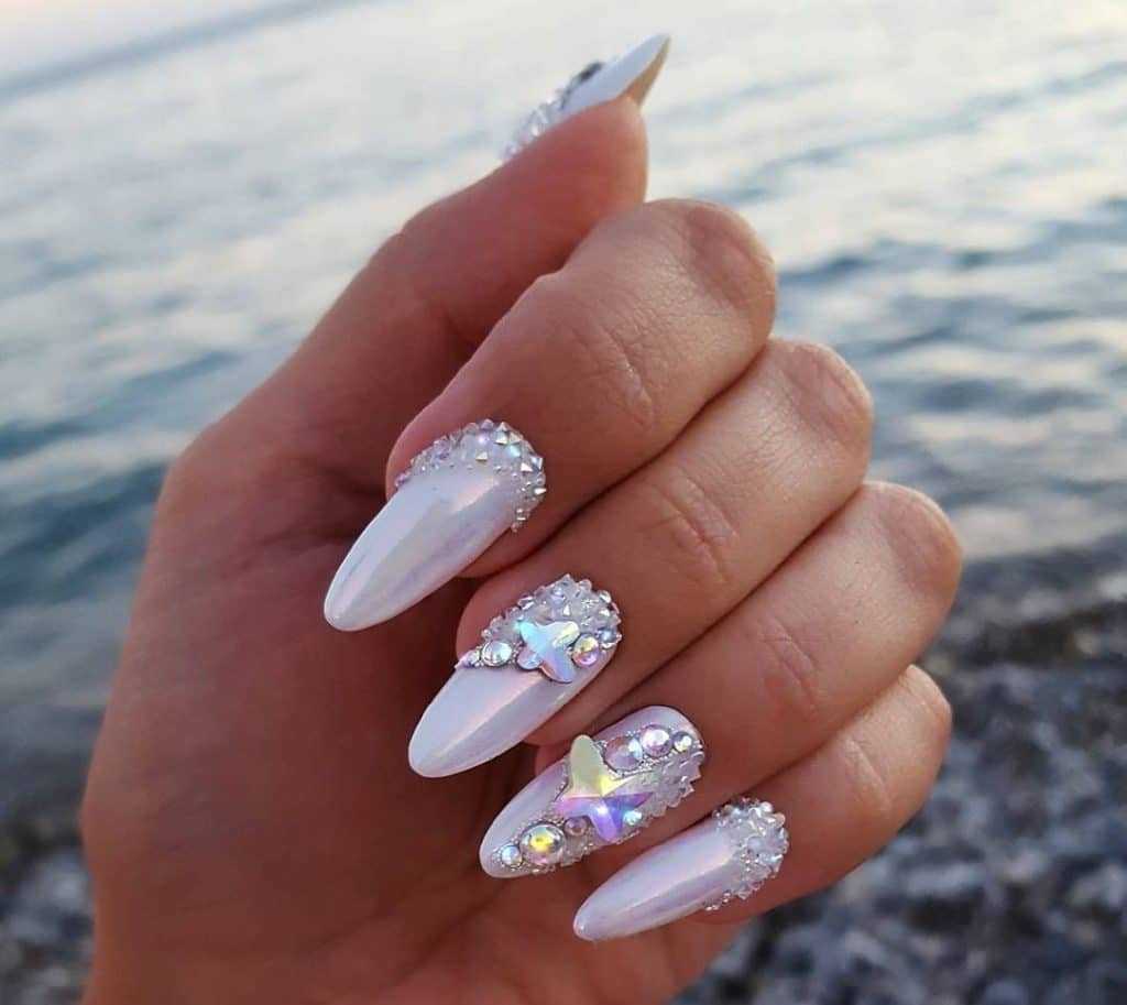 Достаточно просто принять во внимание свои индивидуальные пожелания, чтобы создать идеальный дизайн ноготков. Камушки можно выкладывать в хаотичном порядке, а можно создавать из них различные узоры