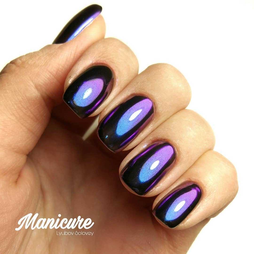 - Темно-фиолетовый позволяет создавать более контрастные сочетания, наносить яркий рисунок на один или несколько ногтей.