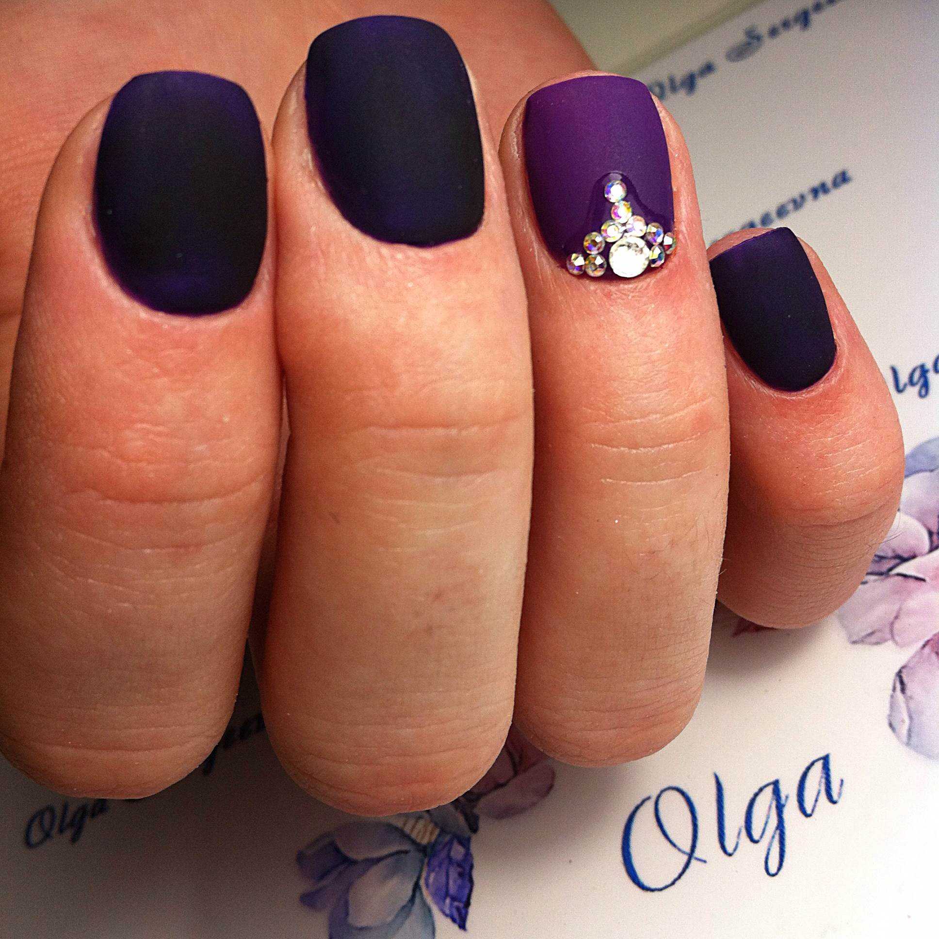 Матовый нейл-дизайн со стразами в сиреневых тонах