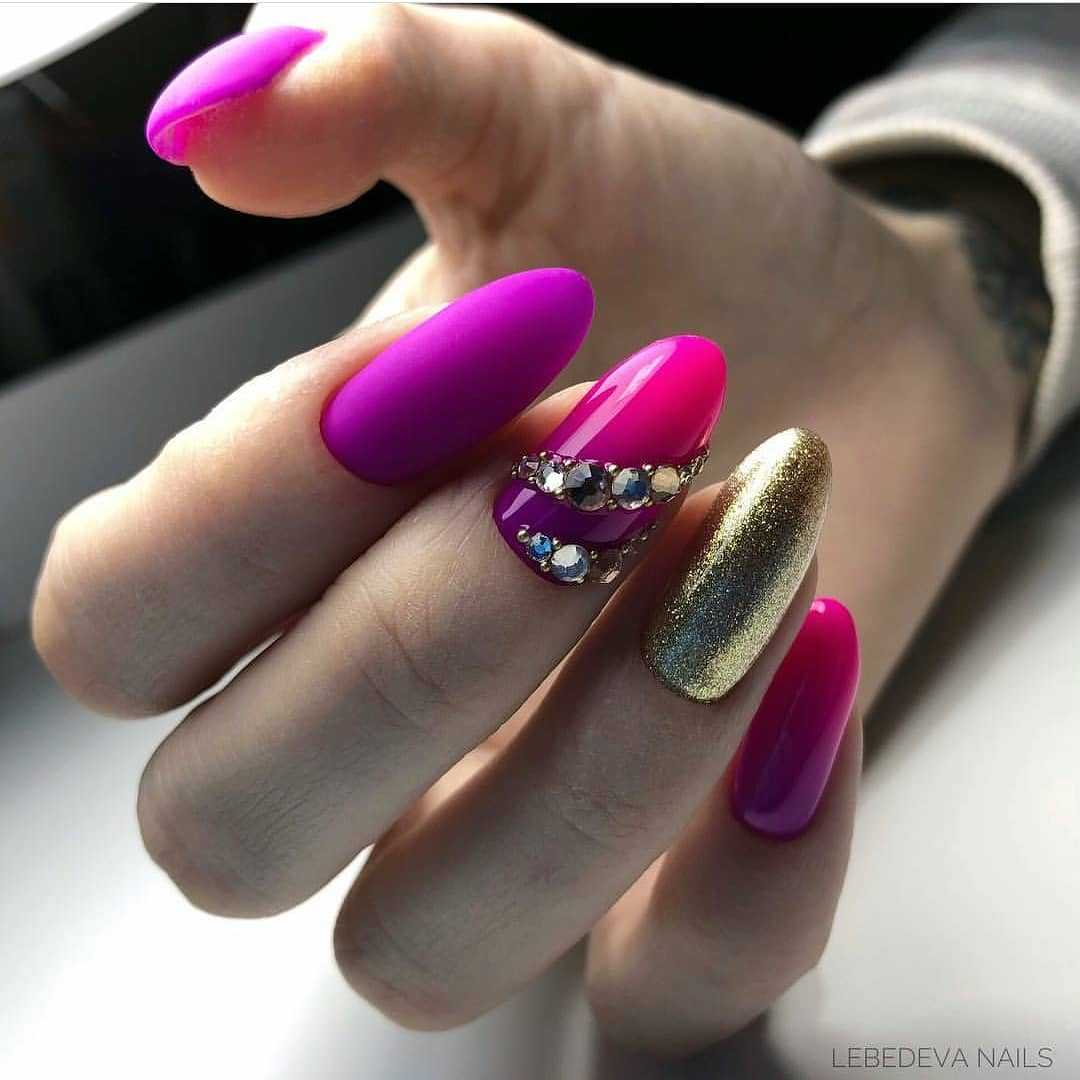 #4 Фиолетовый маникюр с блестящим декором 2020