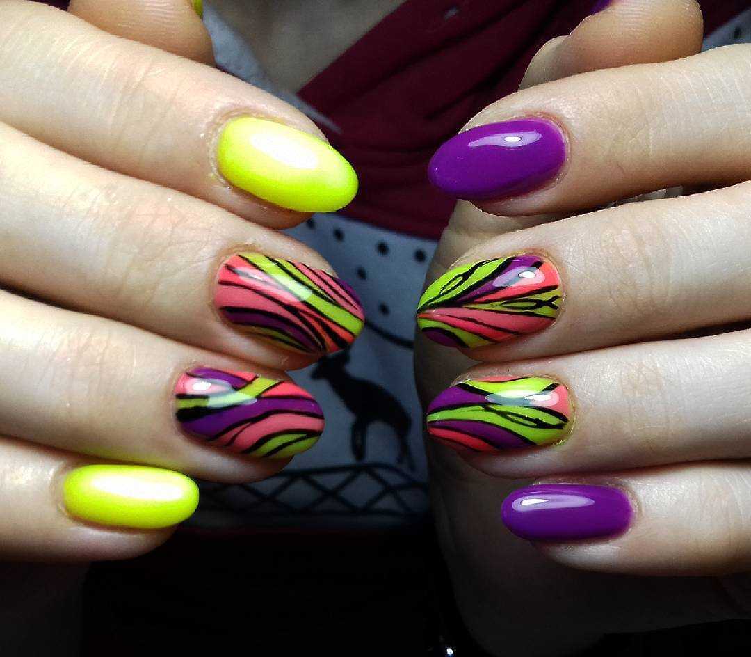 Яркая эффектная комбинация, которая великолепно подходит для летних пляжных образов. Желтый добавляет свежести и легкости маникюру. Однако его нужно добавлять в небольших количествах, чтобы маникюр не выглядел нелепо.
