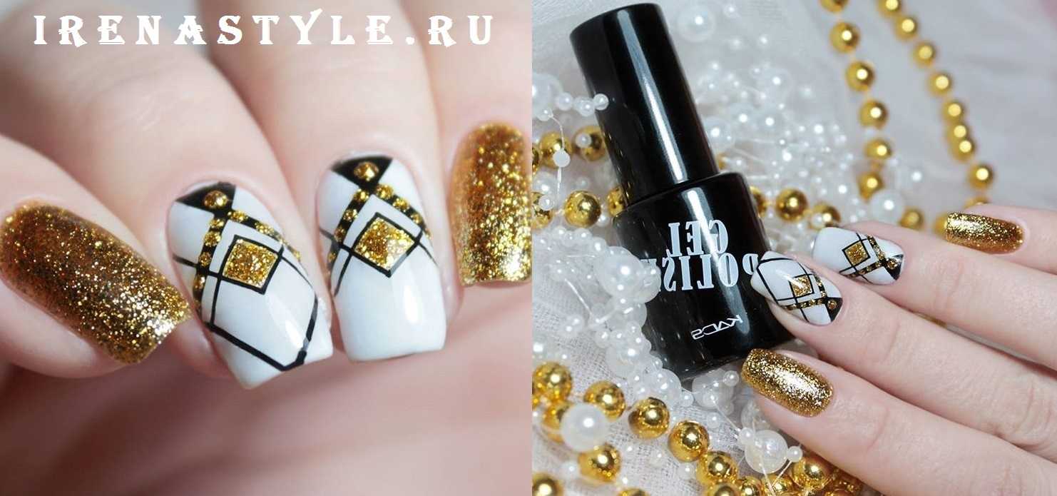 ГеометрияДизайн геометрия – это прямоугольники, углы и полоски. Геометрия на самом деле сегодня в тренде. Более того такой дизайн выглядит аккуратно, стильно, сдержанно, поэтому это отличный выбор для коротких широких ногтей. Полоски наносят параллельно, на одинаковом или разном расстоянии, диагонально – одним словом, фантазируйте. Полоски рисуют вручную или наклеивают.
