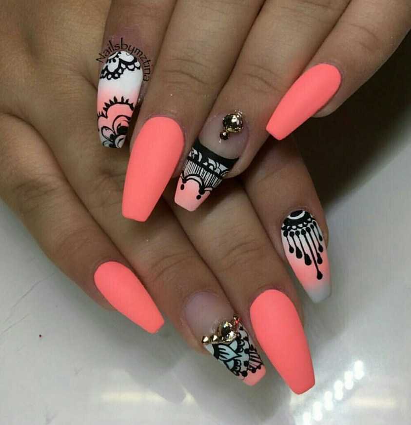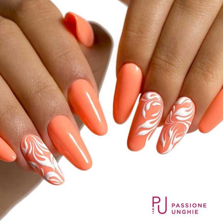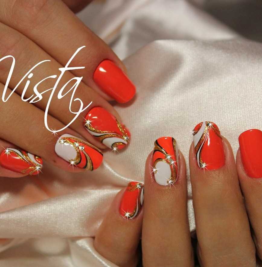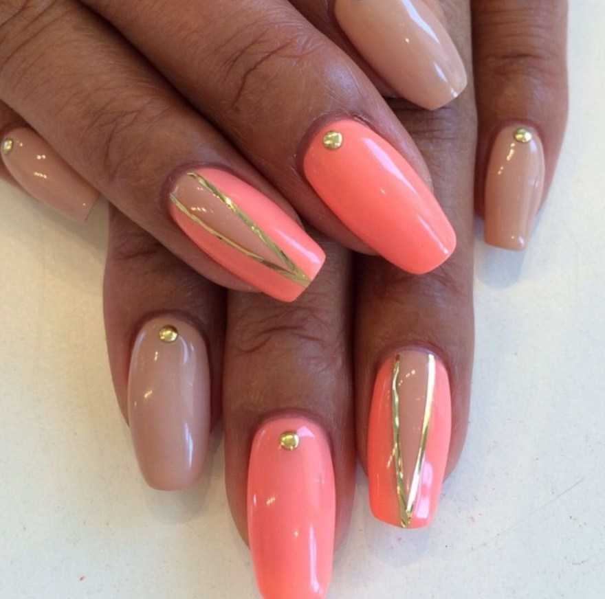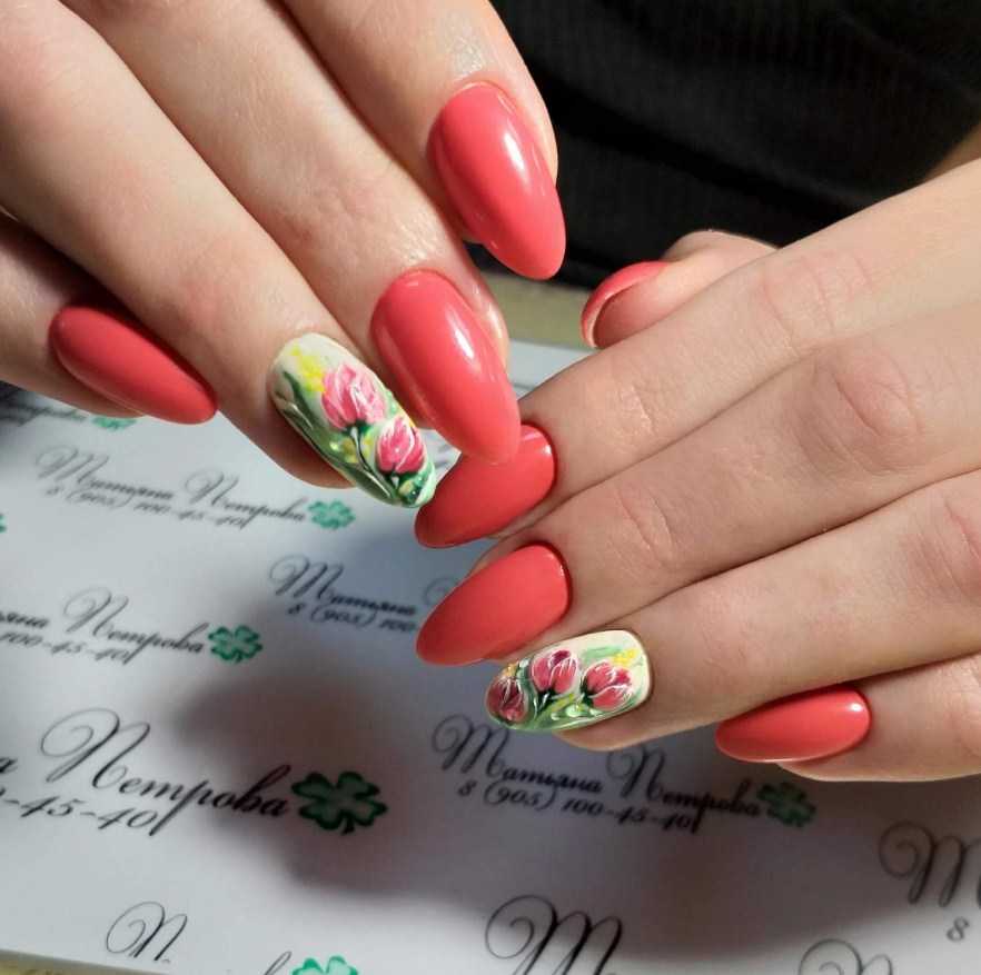 Оттенки коралла особенно хорошо выглядят на загорелой коже, могут применяться в самых простых и в сложных вариантах дизайна. Большинство самых модных техник, появившихся недавно, прекрасно подходят для оттенков этой гаммы и дают эффектный результат.