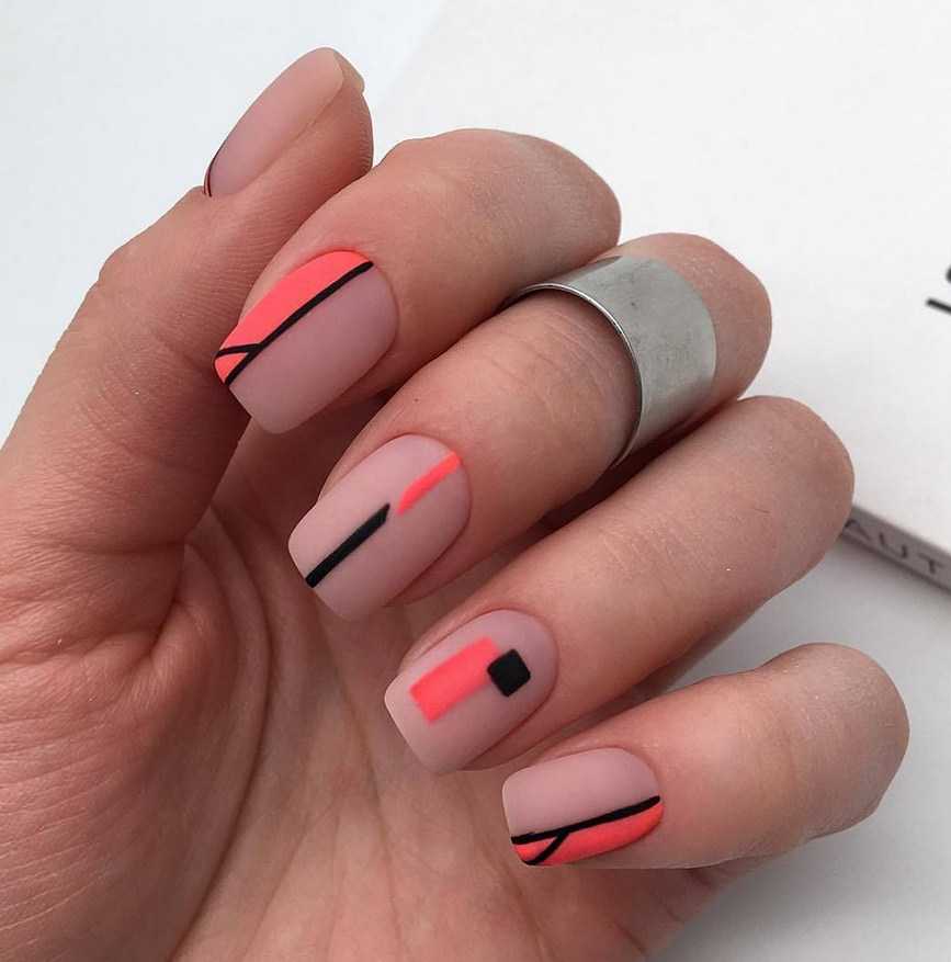 Не смотря на то, что летом хочется более ярких красок, нюдовый и минималистичный дизайны будут популярны на ровне с разноцветным маникюром. Минимализм и натуральность в моде уже не первый год, но в 2019-ом эти стили получат новое прочтение. Самым трендовым считается сочетание в маникюре бежевого и черного оттенка гель-лака.