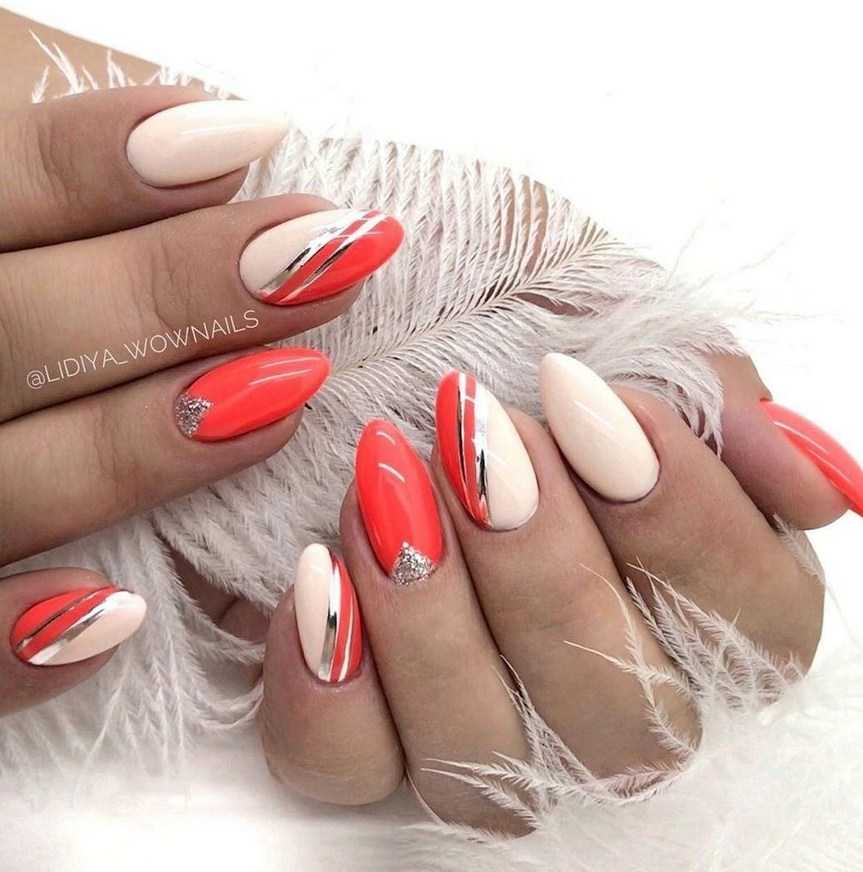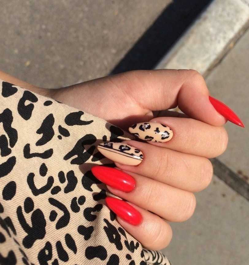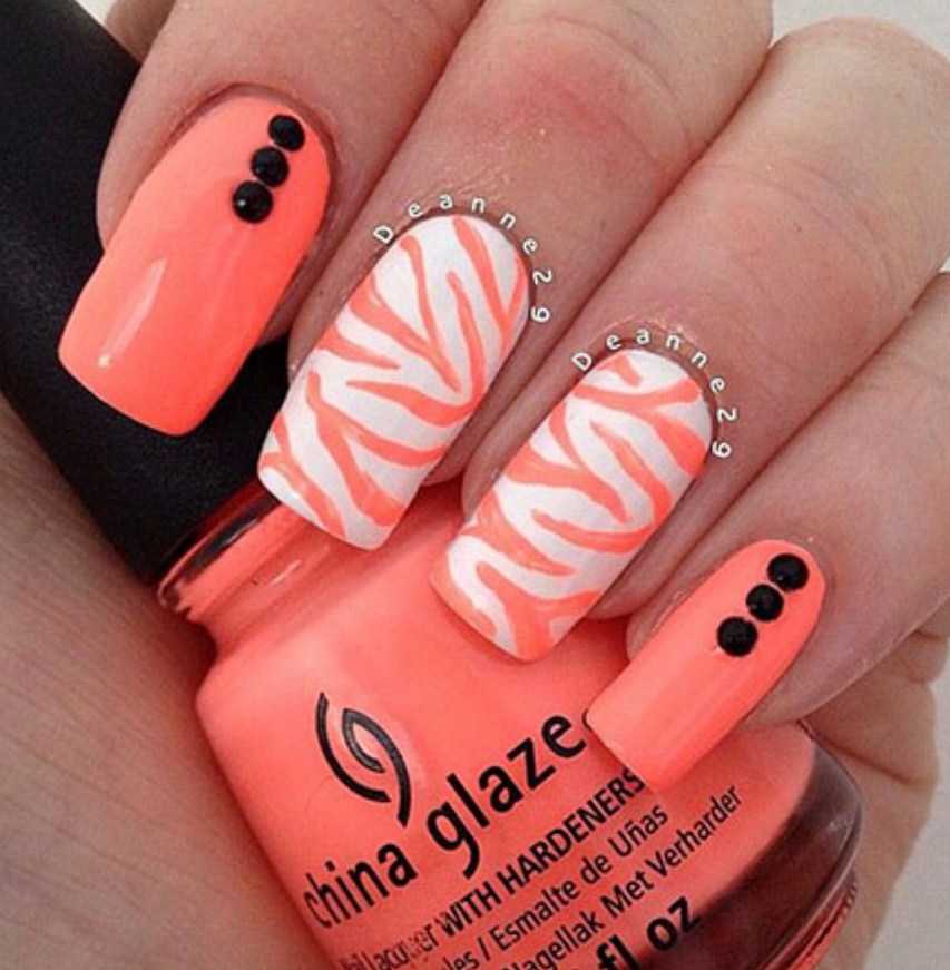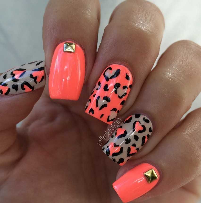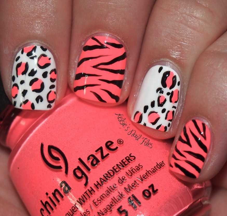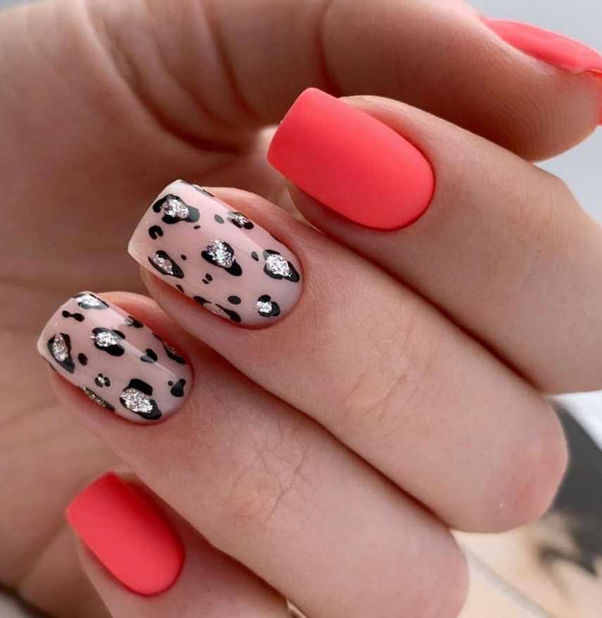 В новом сезоне будут модными техники, имитирующие звериные шкуры и кожу – под рептилию, леопарда и тигра, зебру. Можно покрыть таким декором пару ноготков на руке, а остальные окрасить в цвет коралла.