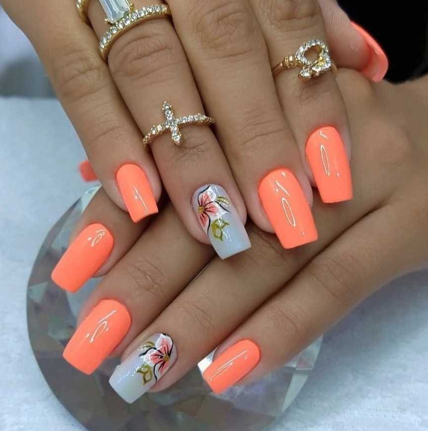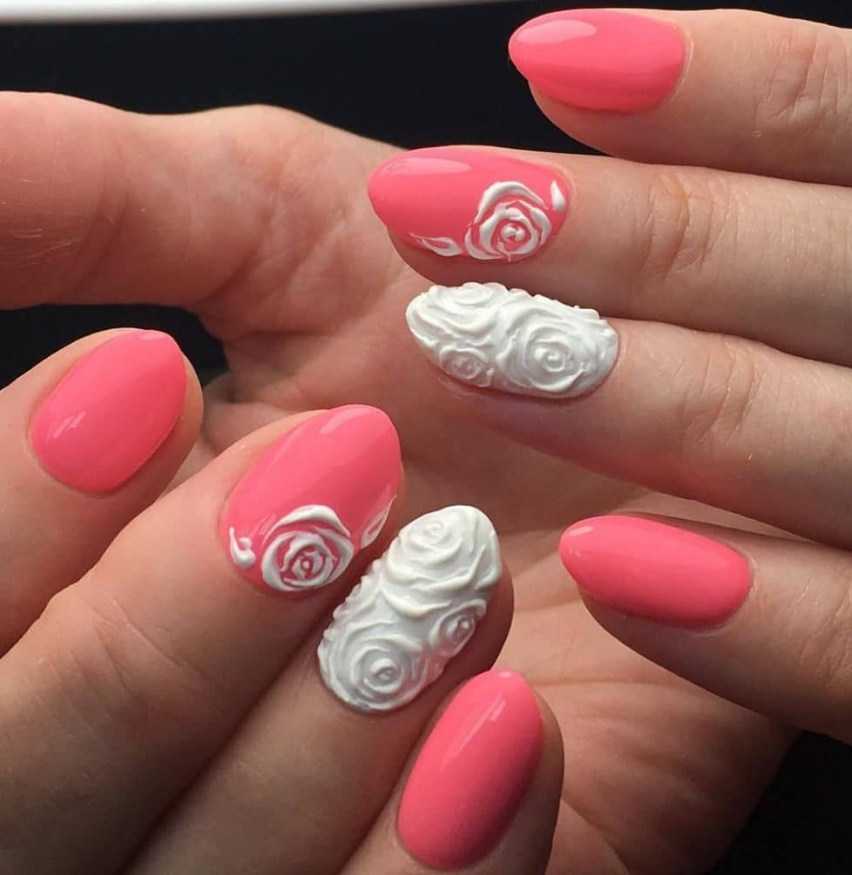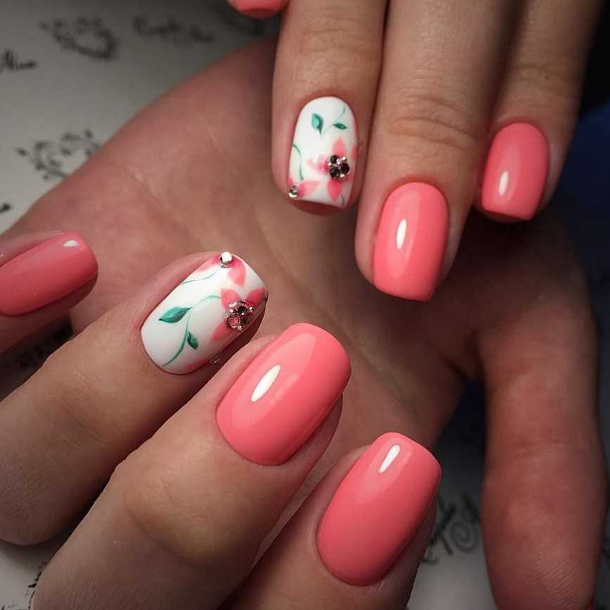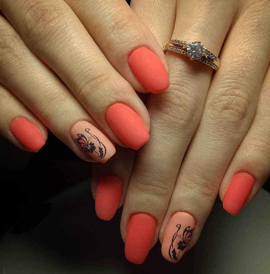 На светлом фоне нередко рисуют рыбок, маки, розы и гвоздики, пальмы и разнообразные узоры. Также цвет коралла можно выбрать для фона и изобразить на нем любые рисунки контрастным лаком – маникюр получится оригинальным и стильным.