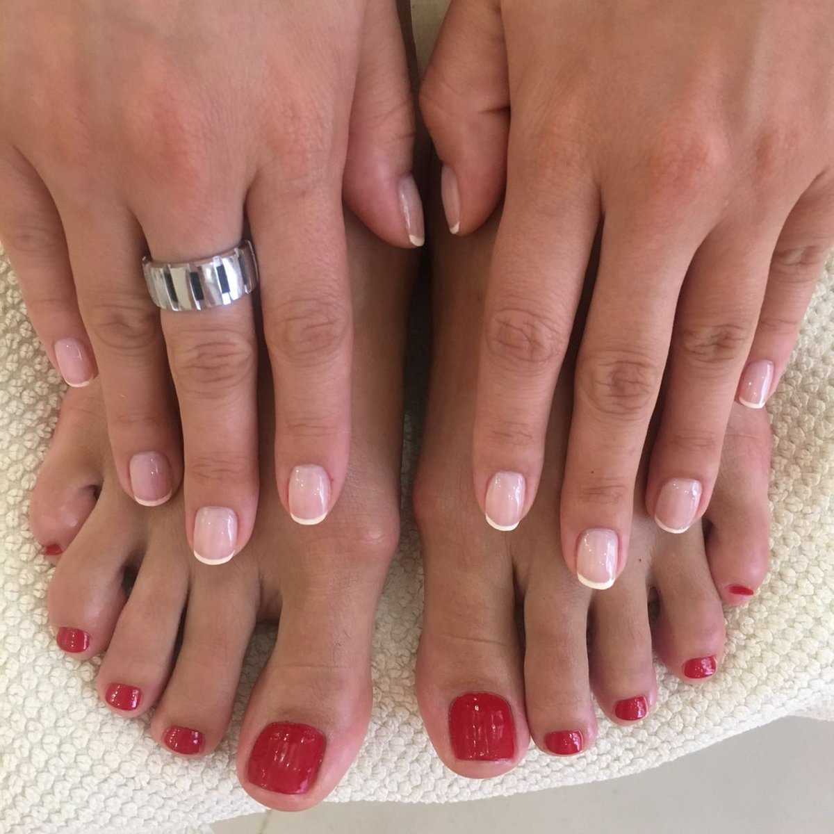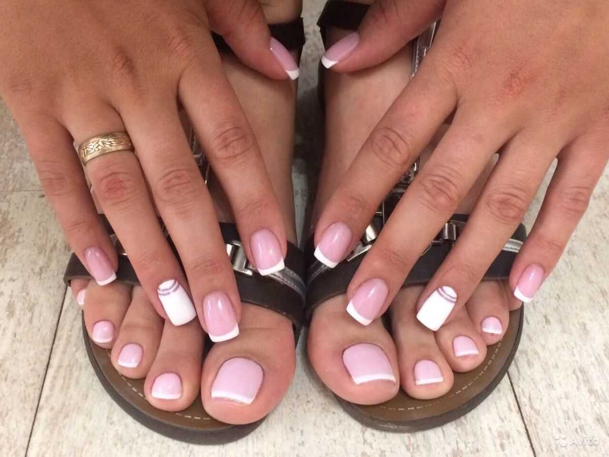 Чтобы ваши ноготки гарантированно выглядели ухоженно и аккуратно, выбирайте французский маникюр. В классическом исполнении можно сделать маникюр и педикюр в единой цветовой палитре. Это беспроигрышный вариант, который никогда не подведет.
