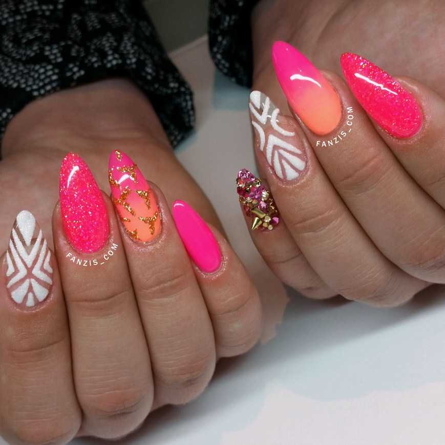Летом можно побаловать себя ярким и броским маникюром. Причем яркость заключается не только в использовании цветастых оттенков. Лаки могут быть и пастельных тонов. Все зависит от их контраста и дополнительного дизайна на них.