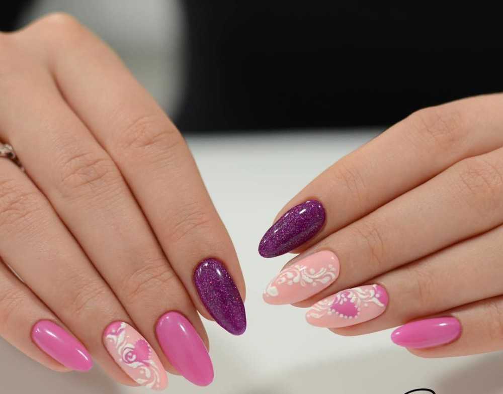 В интернете можно найти бесконечное количество фото розового маникюра во всевозможных комбинациях. Прекрасной идеей будет сочетание розового и голубого цвета. По сути, такая комбинация цветом давно уже используется в повседневной жизни: в одежде, аксессуарах и так далее.