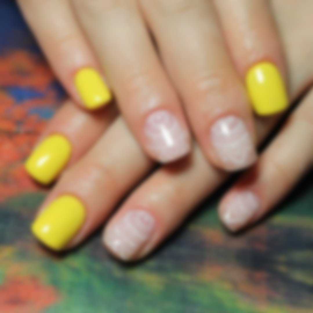 Маникюр в солнечных тонах однозначно привлечет внимание окружающих. Это цвет, который создает не только образ, но и настроение
