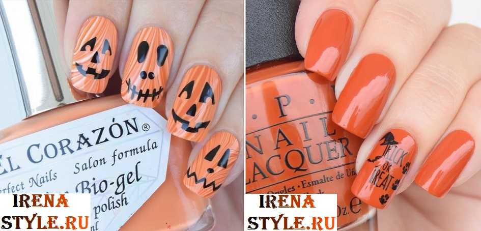 Выбирают с основном оранжевый (как тыква), красный, белый, черный, редко — теплые и нюдовые цвета. Это, что касается самого Хэллоуина. Если это обычный осенний маникюр, то коричневый, зеленый, горчичный.