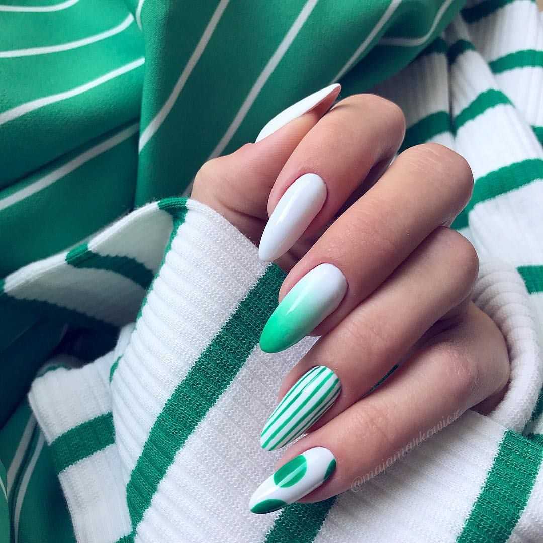 Это лучшее решение для повседневного нейл-арта, не слишком заметного и отвлекающего внимание. Но если разбавить спокойный фисташковый с другими оттенками, то вы получите невероятно стильные ней-арты, которые станут шикарным украшением торжественного образа