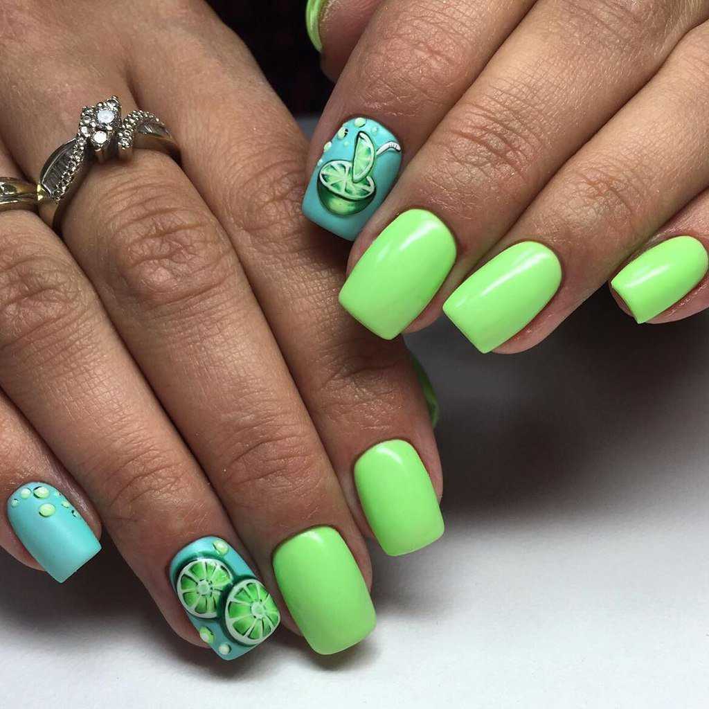 Фисташковый цвет, прекрасно смотрится в ярких и красивых летних дизайнах маникюра. Этот оттенок выглядит намного интереснее и необычнее классического зеленого цвета