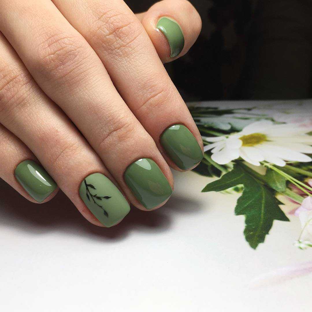 - Аккуратные веточки с листочками в выполнении контрастными оттенками.