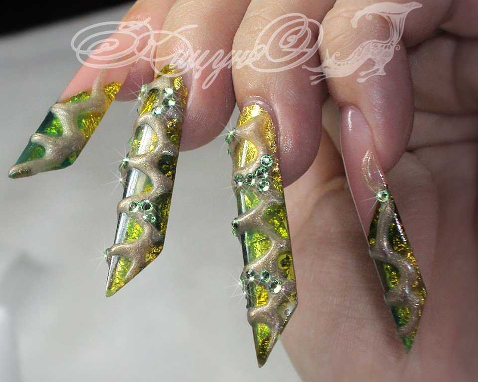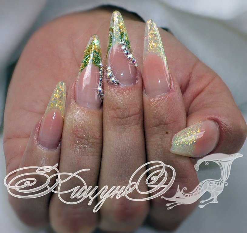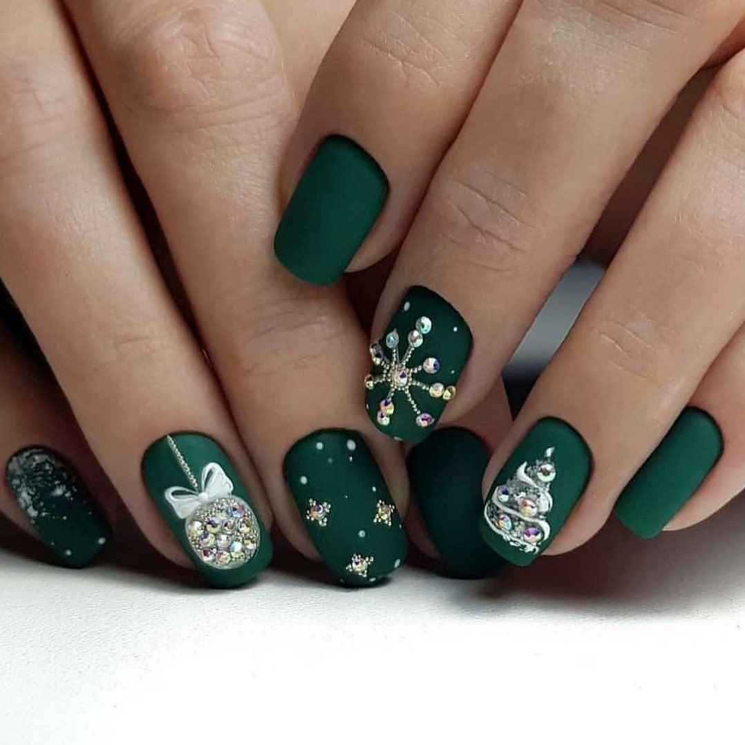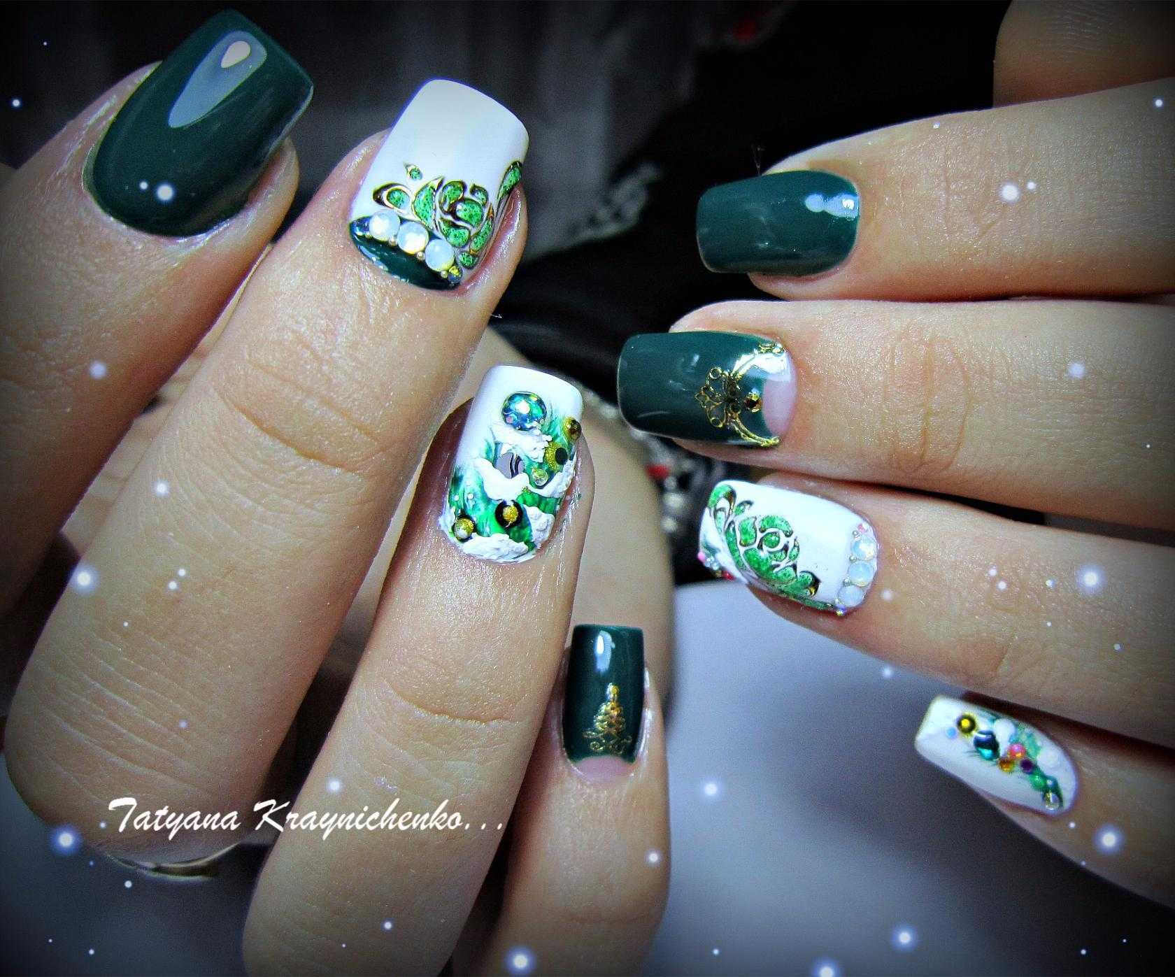 ВЕЧЕРНИЙ МАНИКЮР ЗЕЛЕНЫЙ С ЗОЛОТОМ И С СЕРЕБРОМ