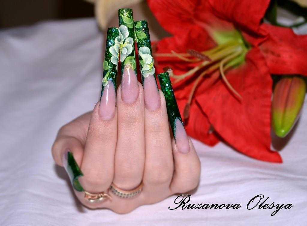 С развитием nail индустрии появился огромный выбор УФ-покрытий с интересными эффектами, декора и аксессуаров для ногтей. Все это многообразие миксуется между собой и руками опытных мастеров создаются потрясающей красоты варианты дизайна ногтей. Для зеленого маникюра актуальны следующие варианты исполнения:
