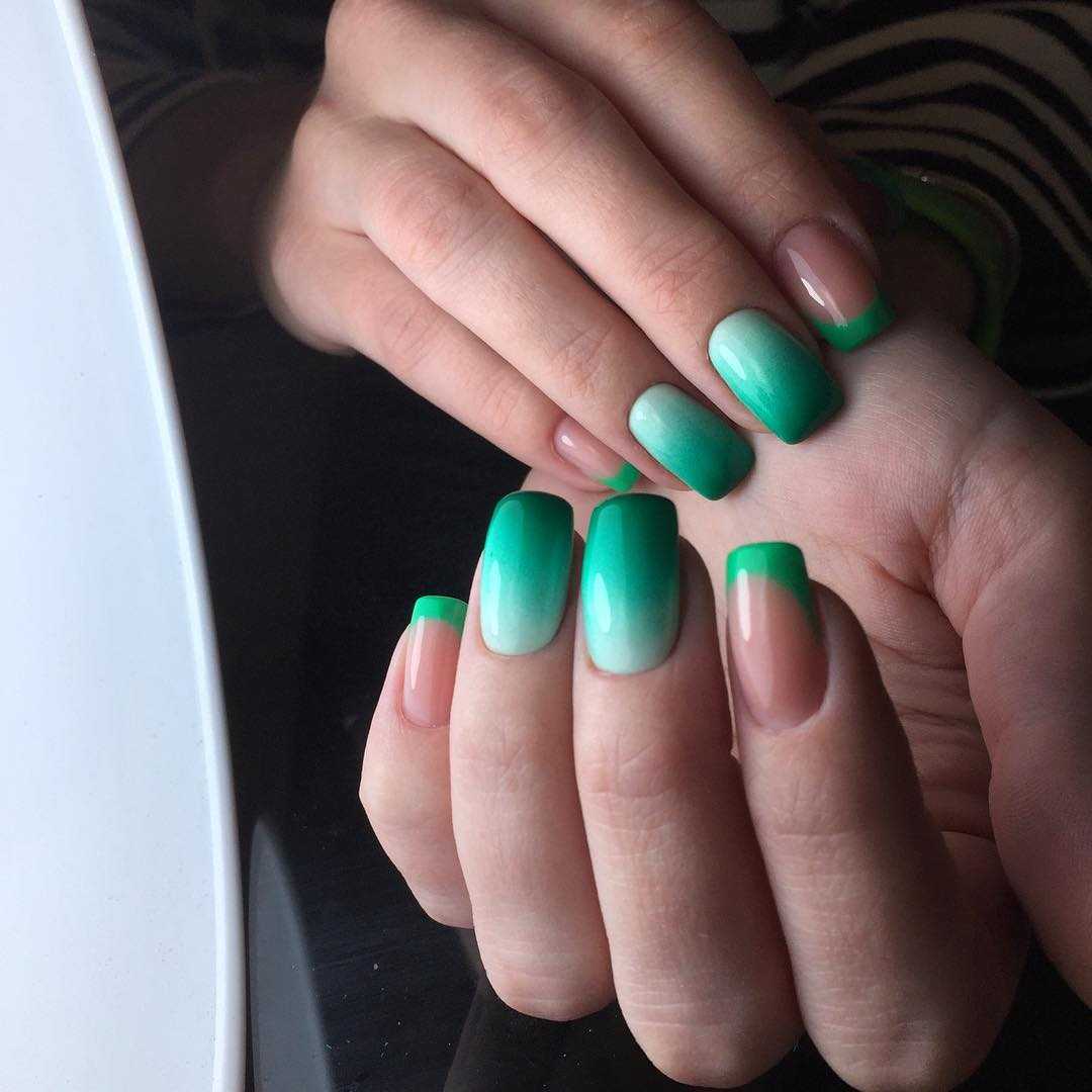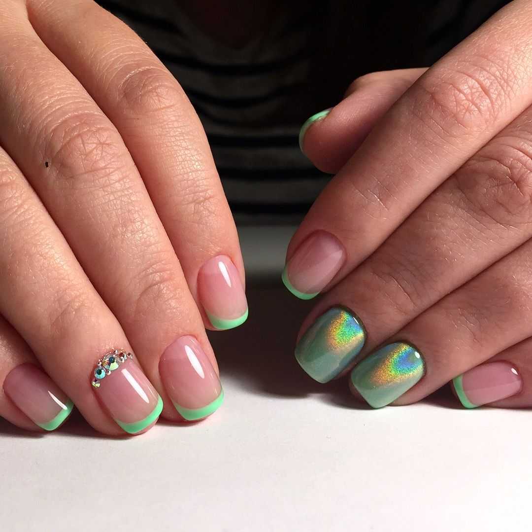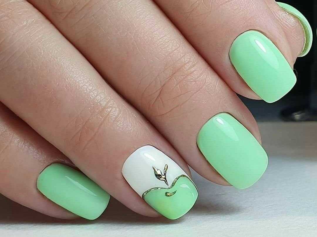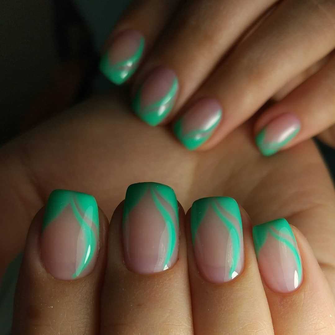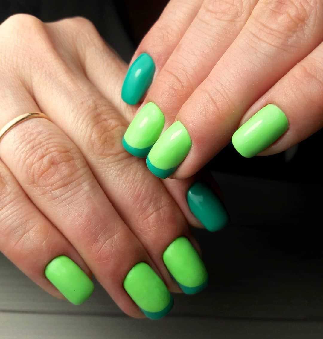 На фотографиях актуальные дизайны стильно смотрятся со всеми оттенками: от салатовых и неоновых до благородно-изумрудных. На лето особенно актуальны цвет молодой травы и нежный приглушённый ментол.