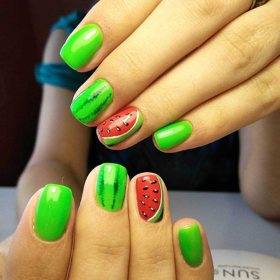 Весна ассоциируется с цветами, а лето – со спелыми ягодами и фруктами. Эта связь лучше всего подтверждается дизайном ногтей. Дольки апельсина, арбуза или киви должны присутствовать не только на столе, но и на ногтях.