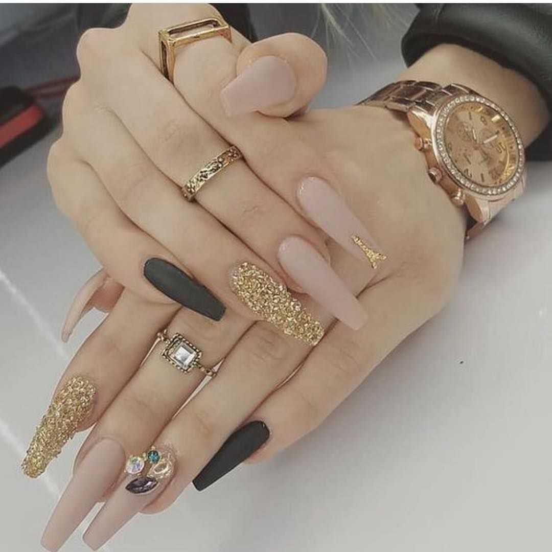 Длинный золотой маникюр: самые красивые варианты 2023-2024
