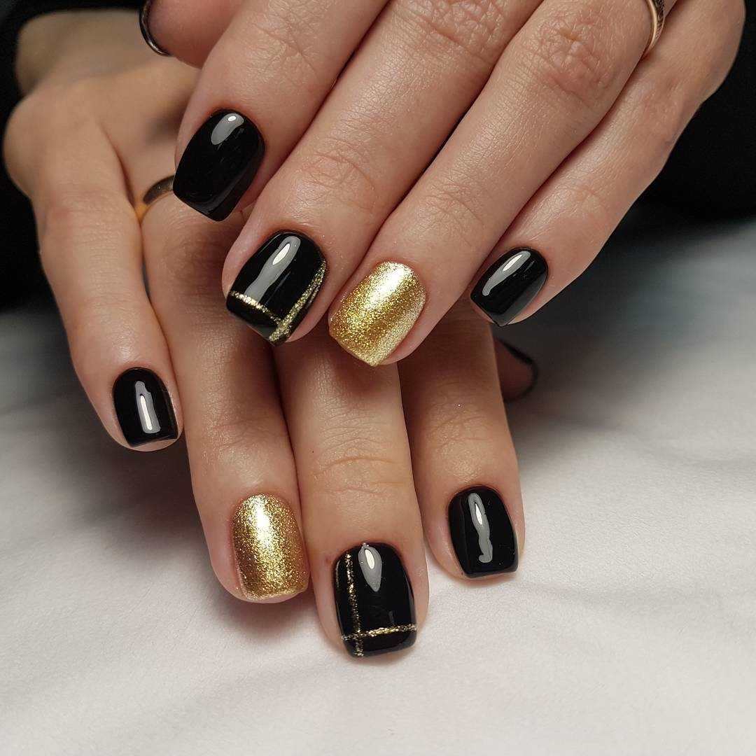 Такой оригинальный маникюр с золотом добавит вашему образ остроты и оригинальности, увидеть его можно ниже на фото.