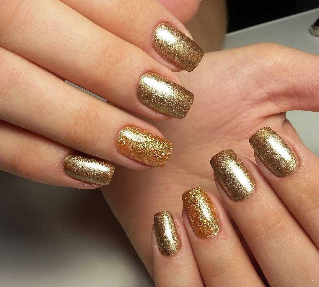 Золотой гель лак и шеллак на ногтях: фото маникюра 2023-2024