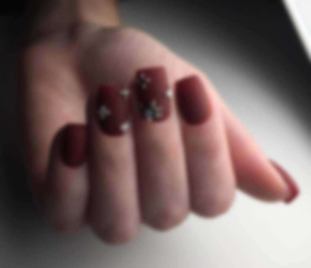 Существуют варианты матовых ноготков со стразами и попроще. Скромные дизайны не уступят инкрустированным ногтям по красоте, но будут выглядеть немного сдержаннее.