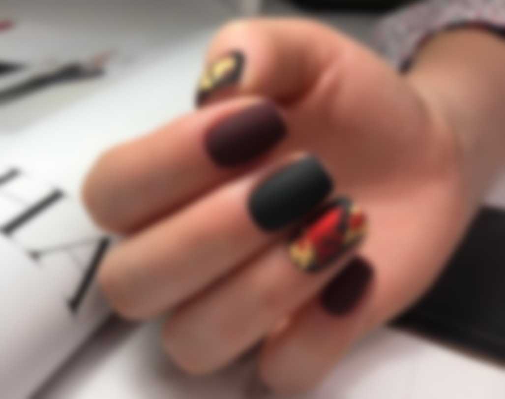 Интересной идеей дорогого и богатого матового маникюра будет дизайн с добавлением: