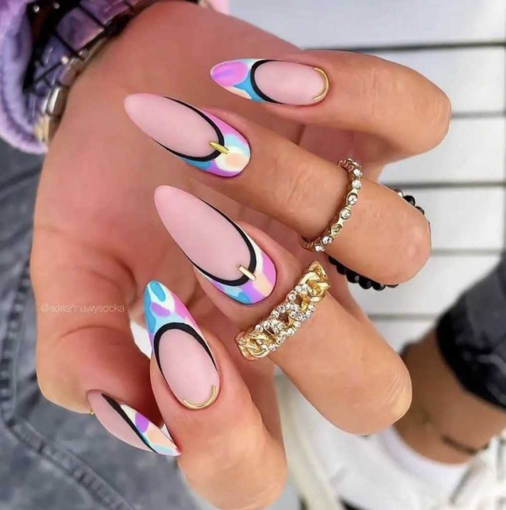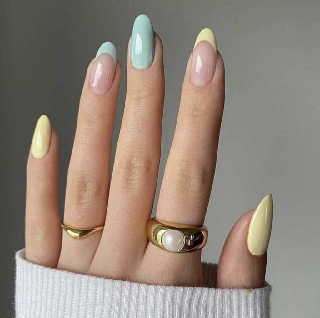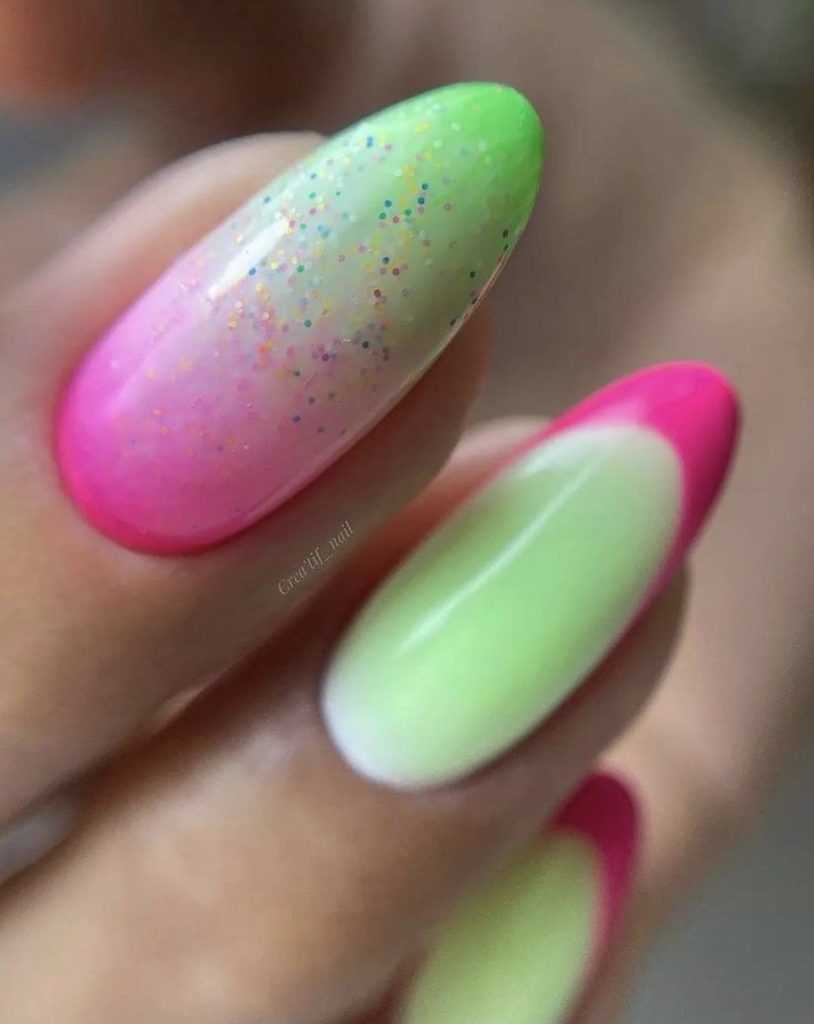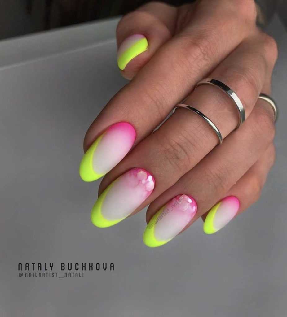 Цветной френч на форму миндаль