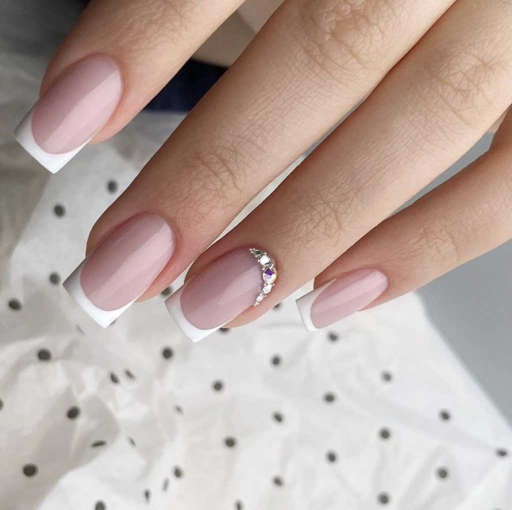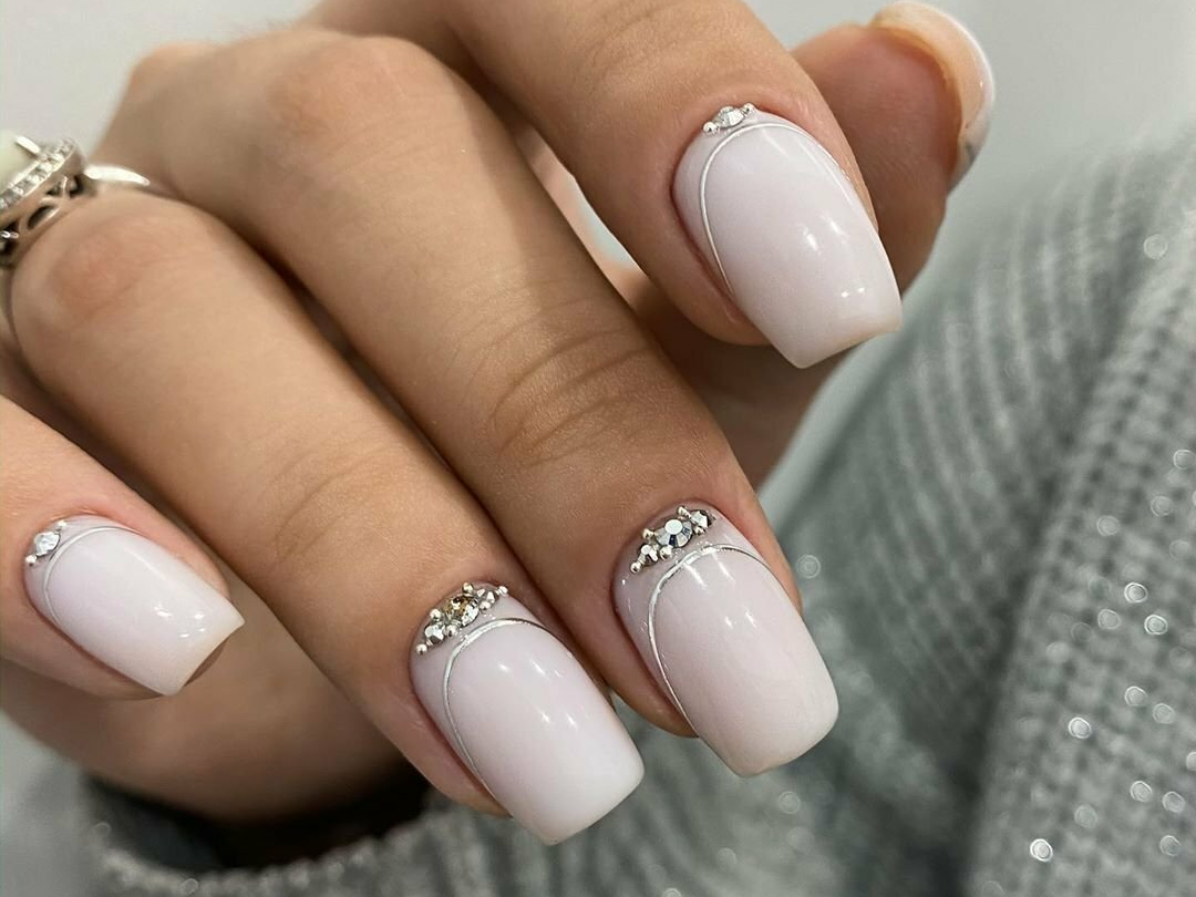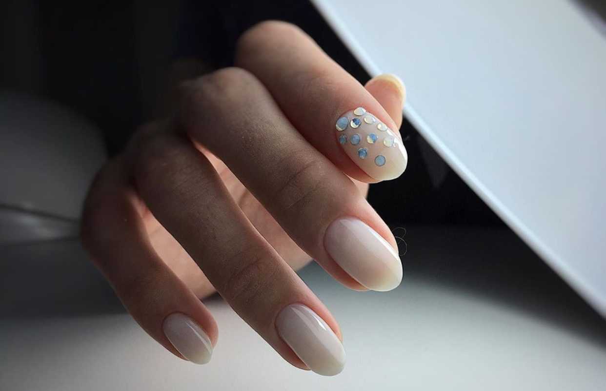 Молочный маникюр со стразами