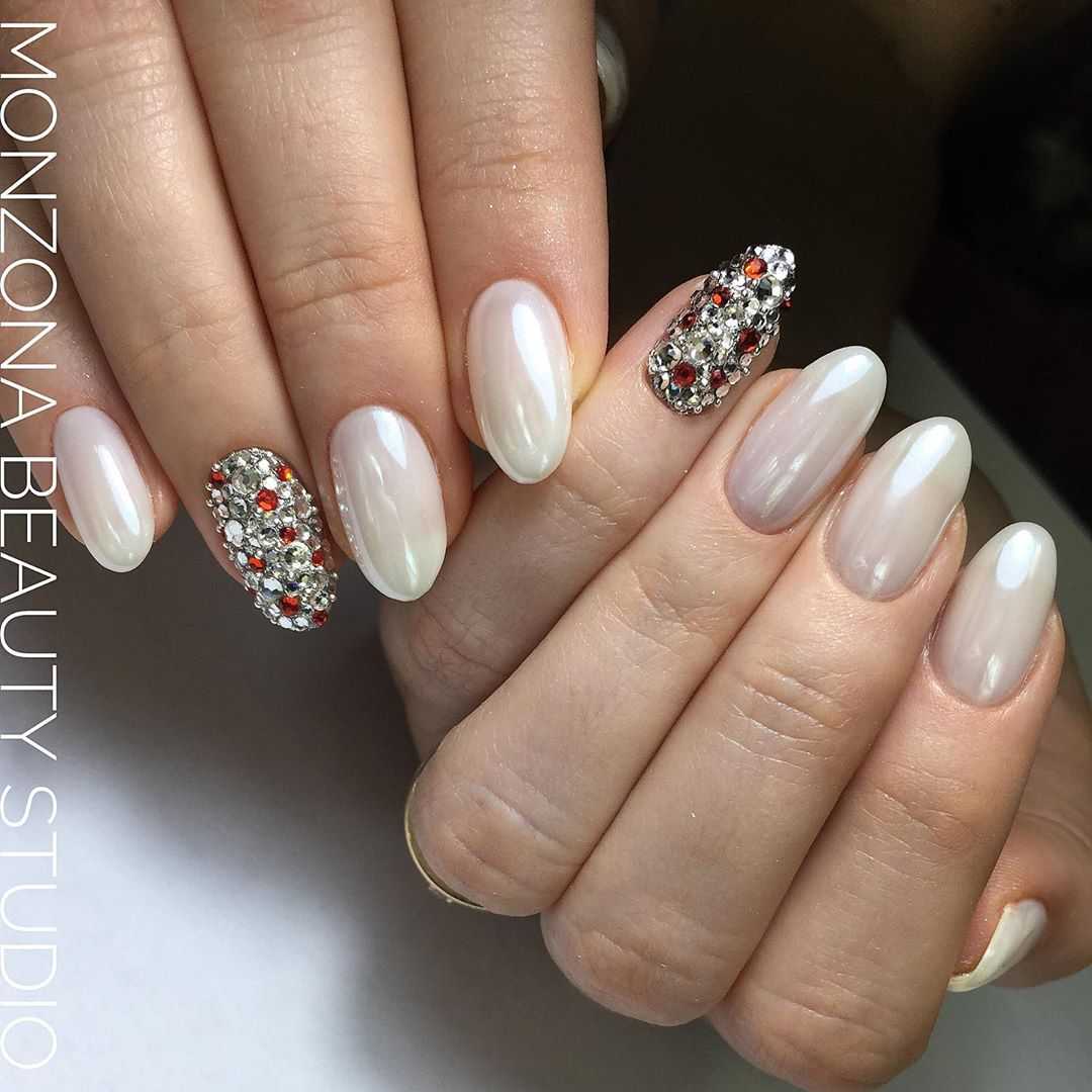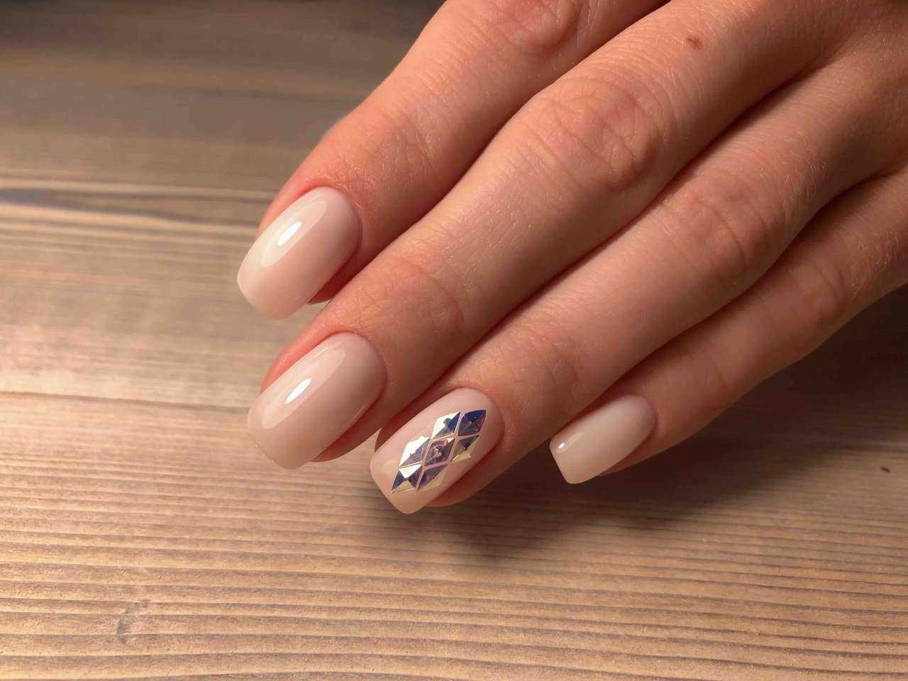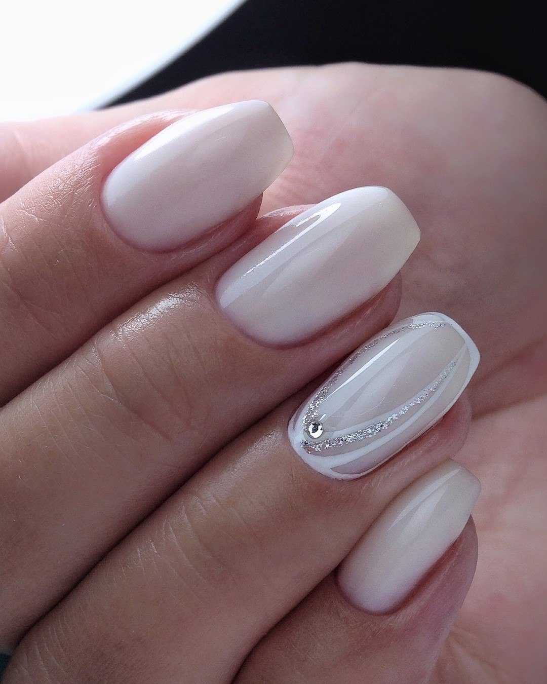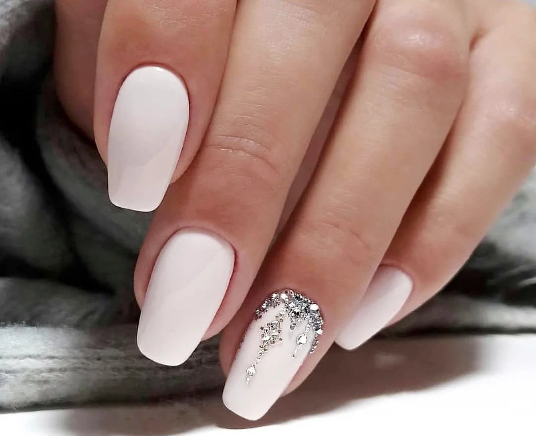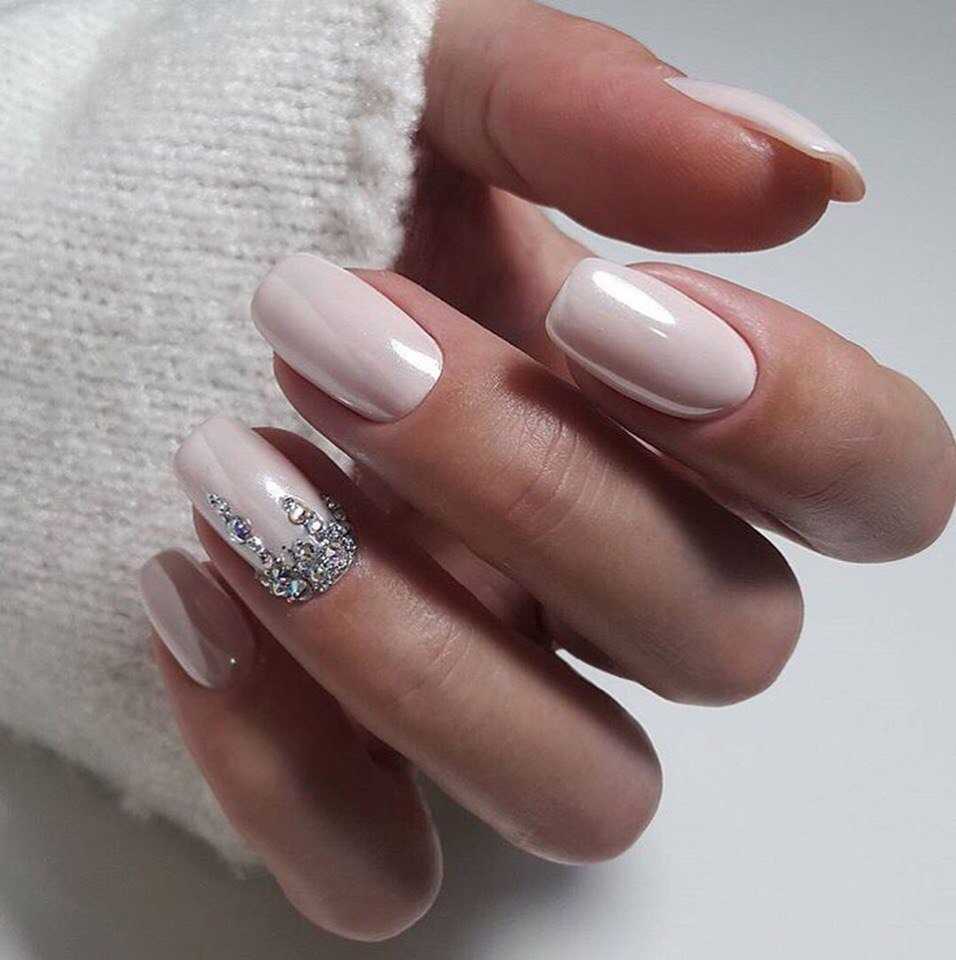 #2 Маникюр молочного цвета со стразами