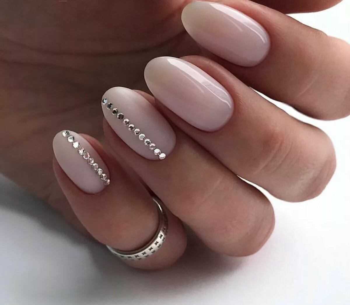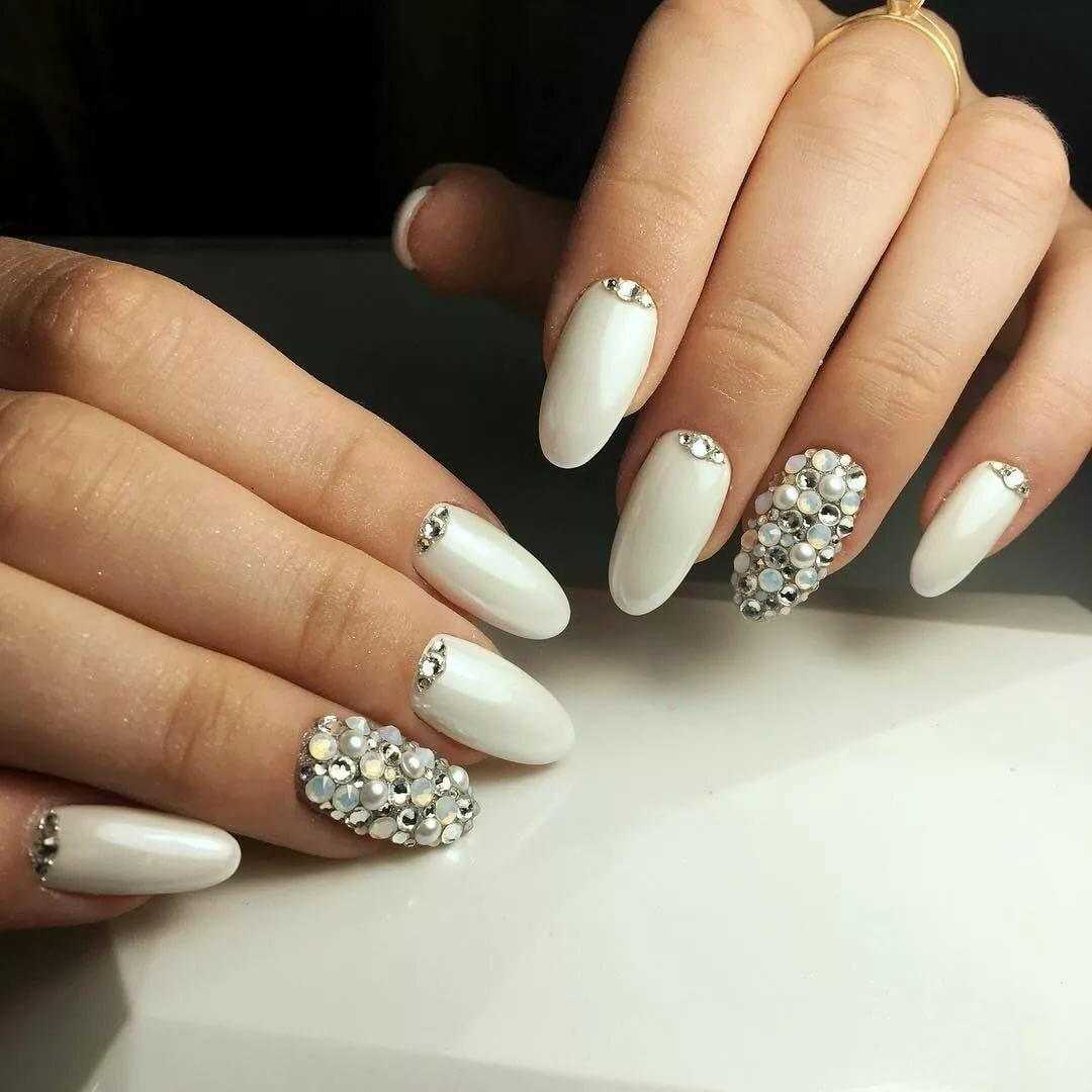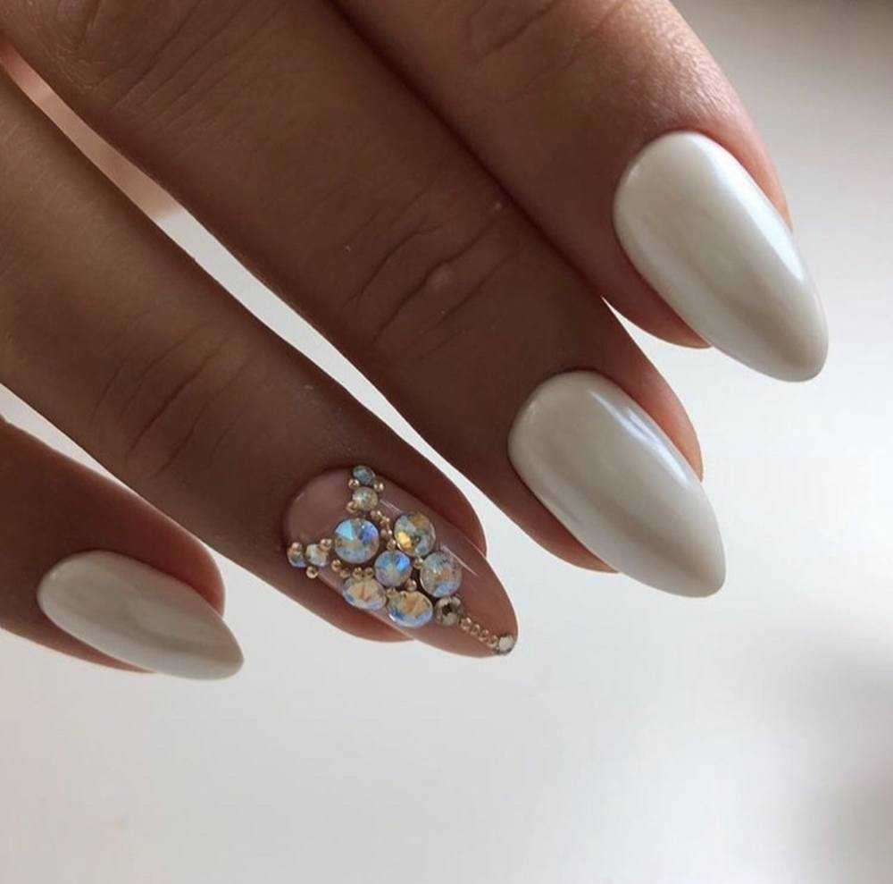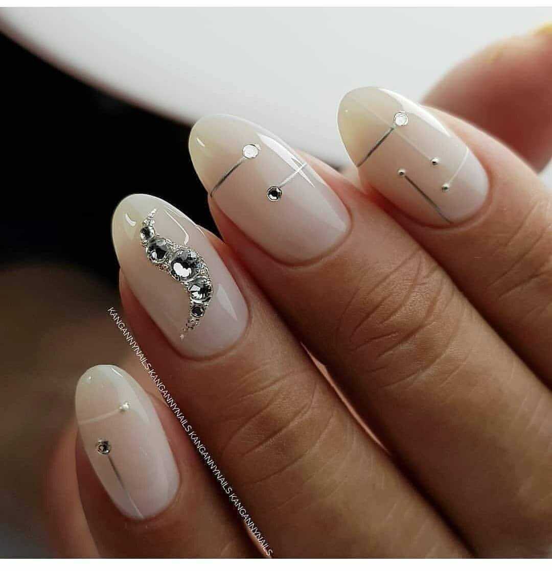 #2 Маникюр молочного цвета со стразами