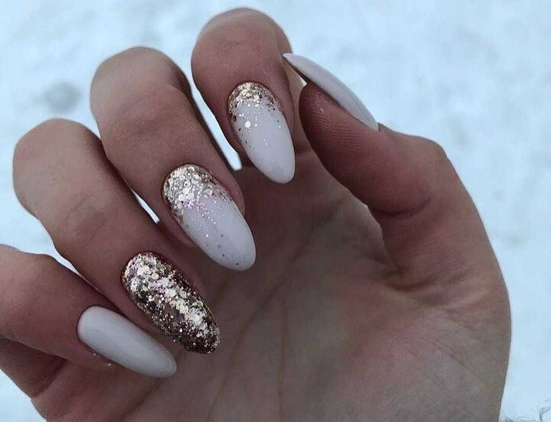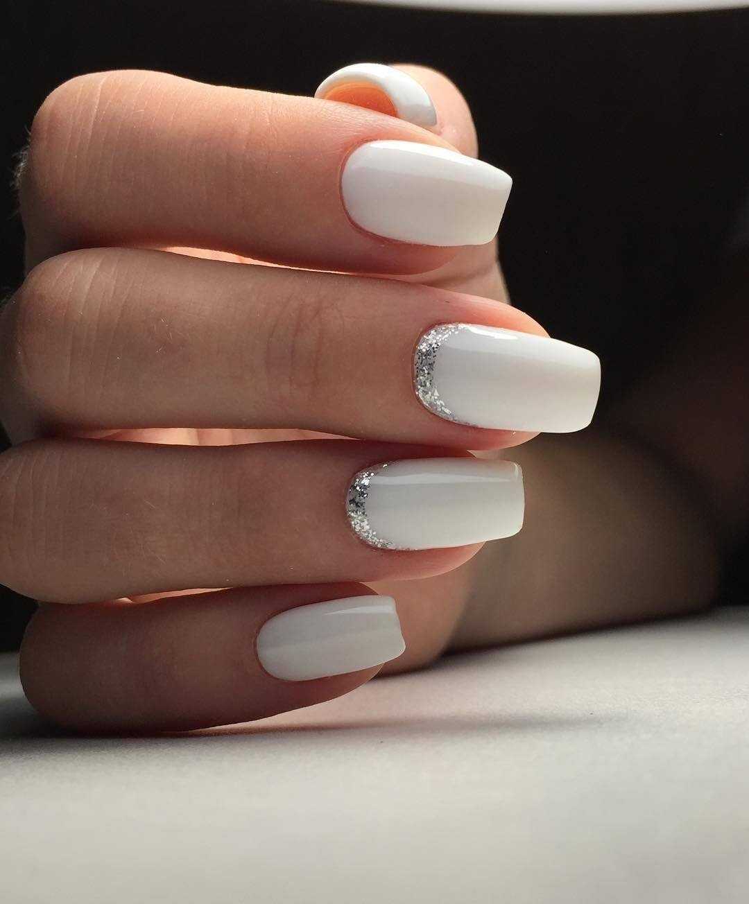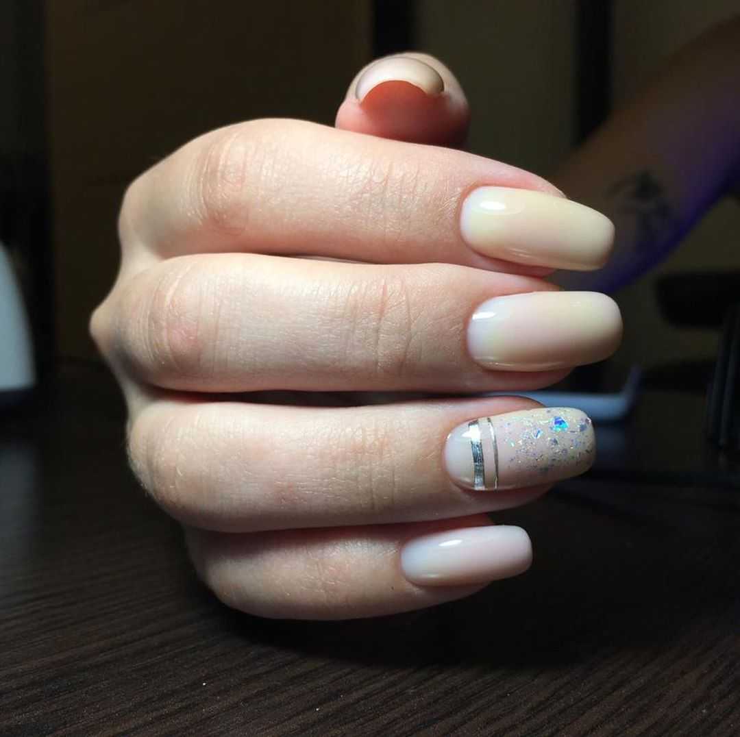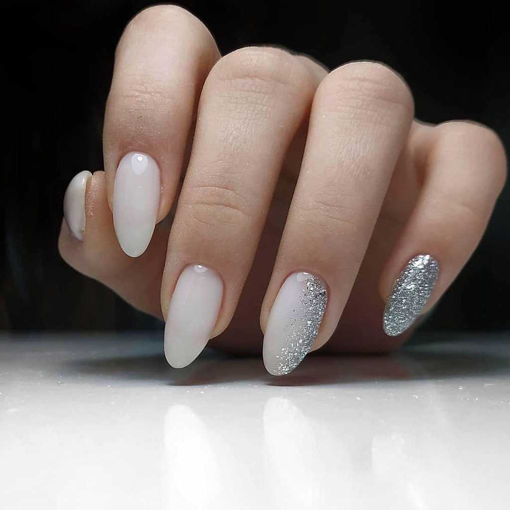Если вы хотите добавить немного блеска в свой молочный маникюр, то можно сделать его с блестками. Это очень красивый и яркий дизайн, который выглядит особенно эффектно на вечерних мероприятиях.