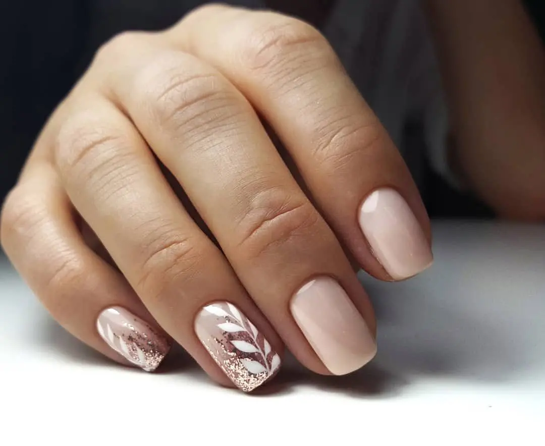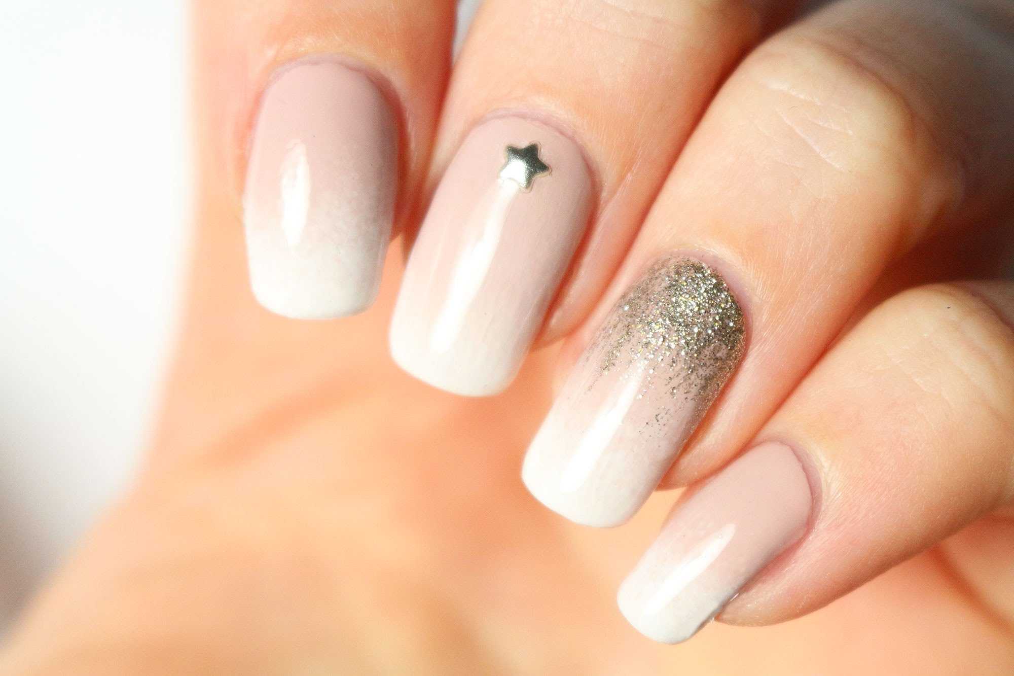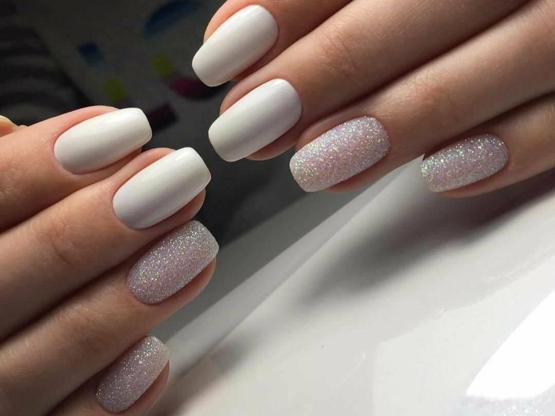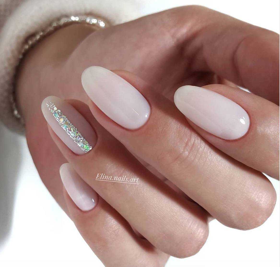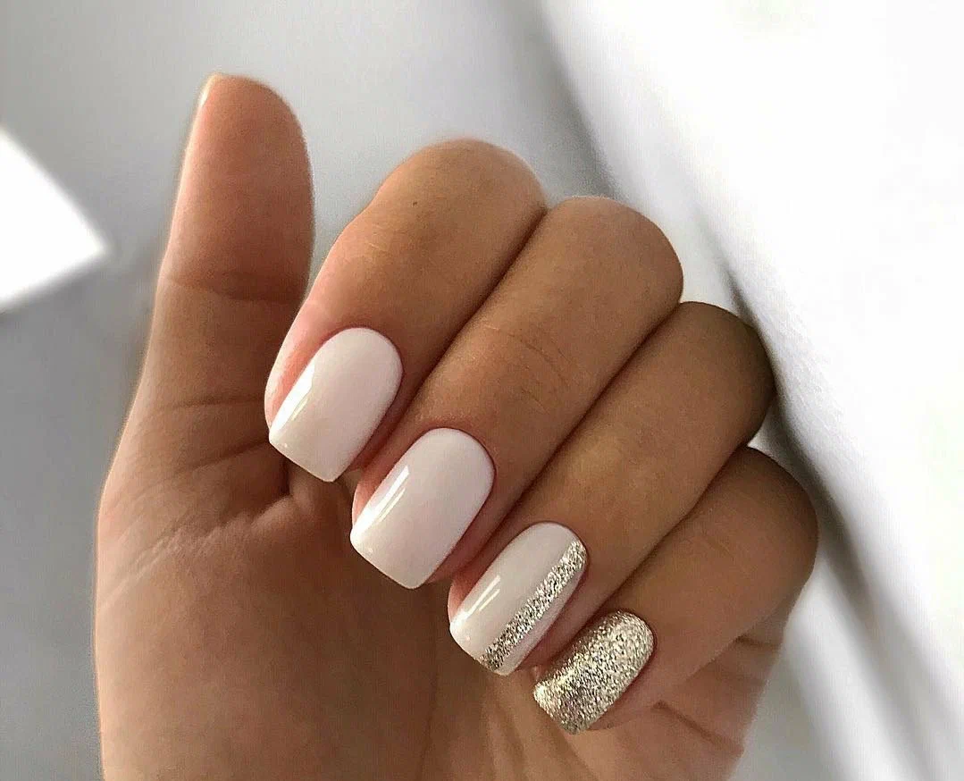 Молочный маникюр с блестками