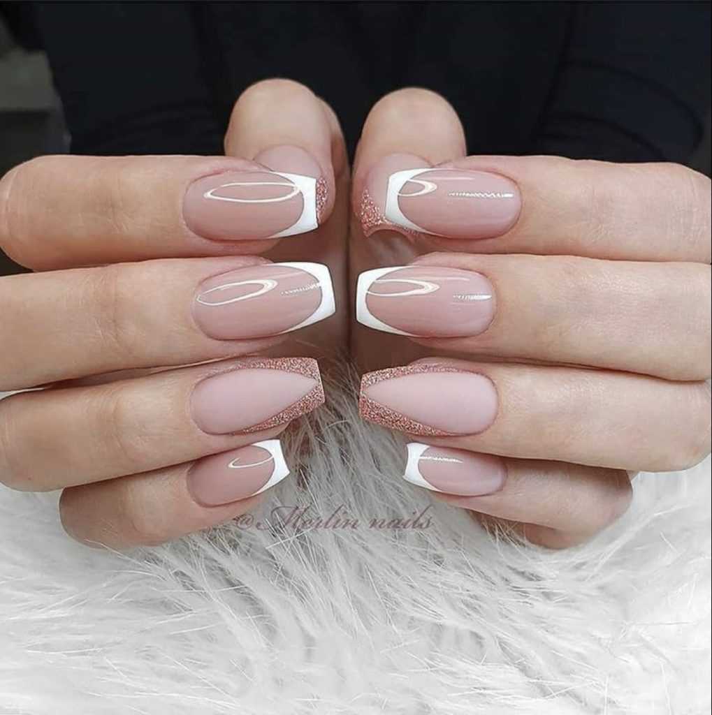 - декорированный. К белому френчу отлично подойдут не стразины и бусины, а пудровое покрытие, или мелкие блёстки;