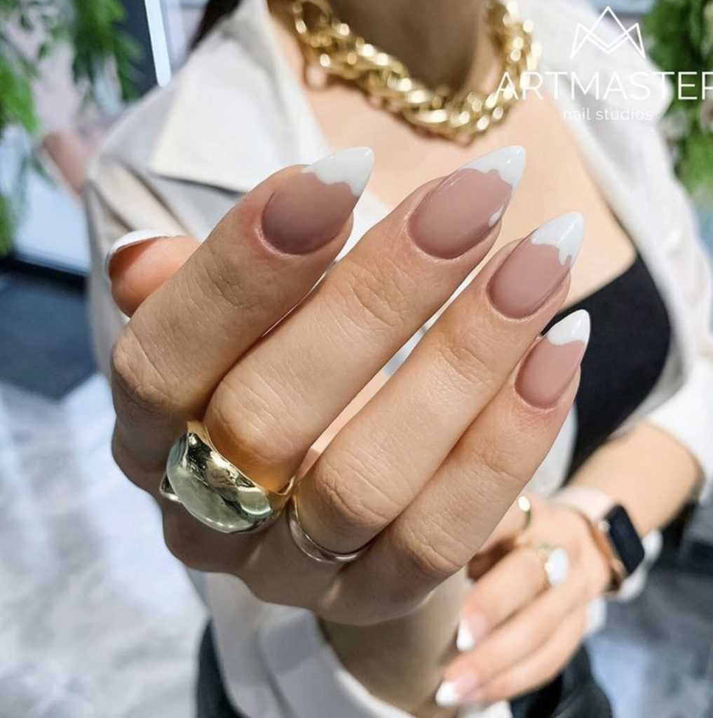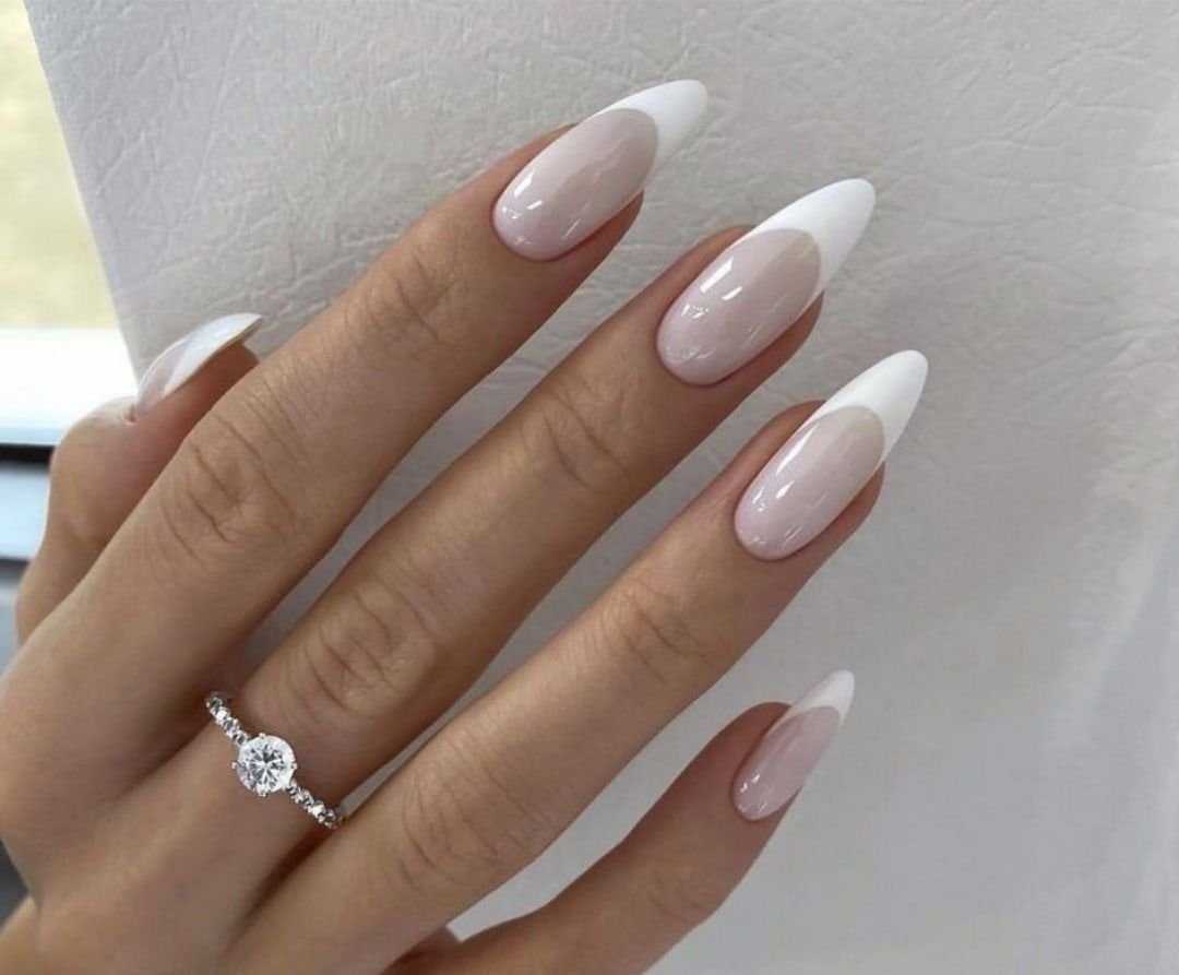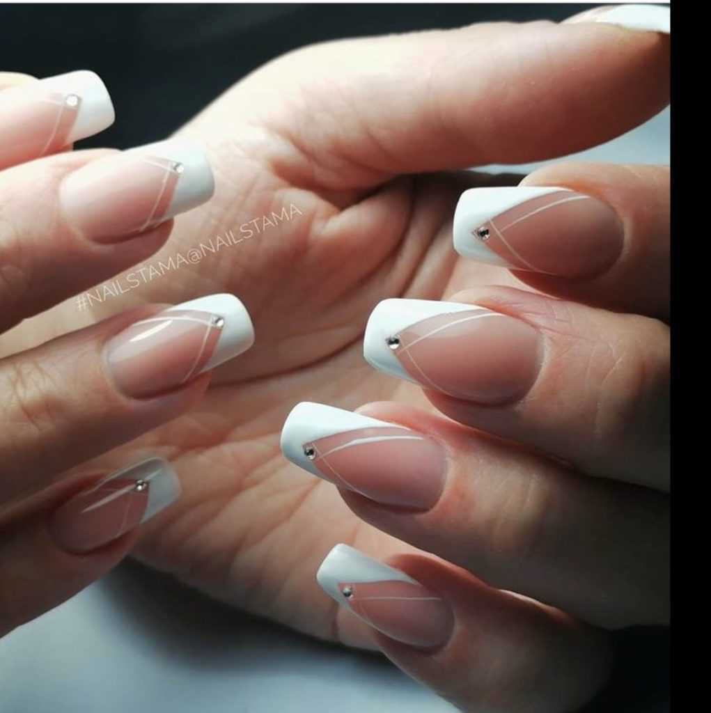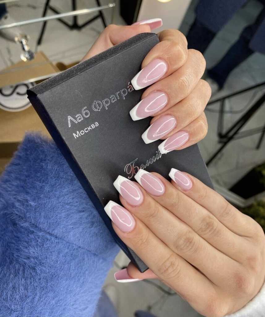 Белый френч на длинные ногти всех форм: новинки и идеи 2023-2024