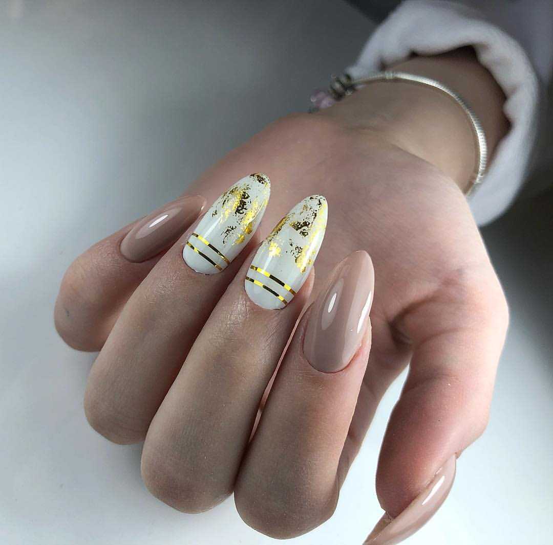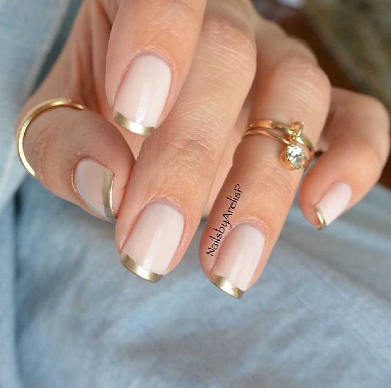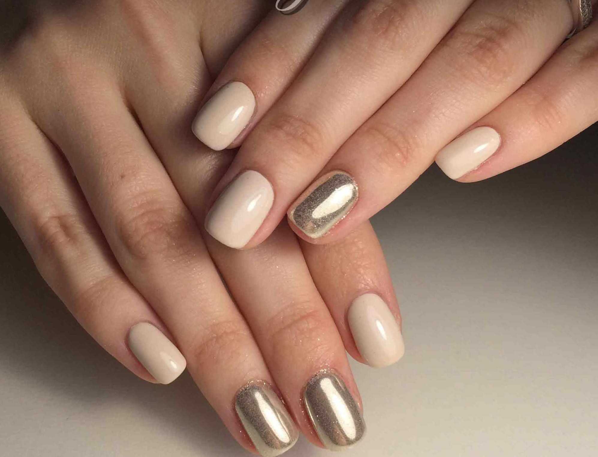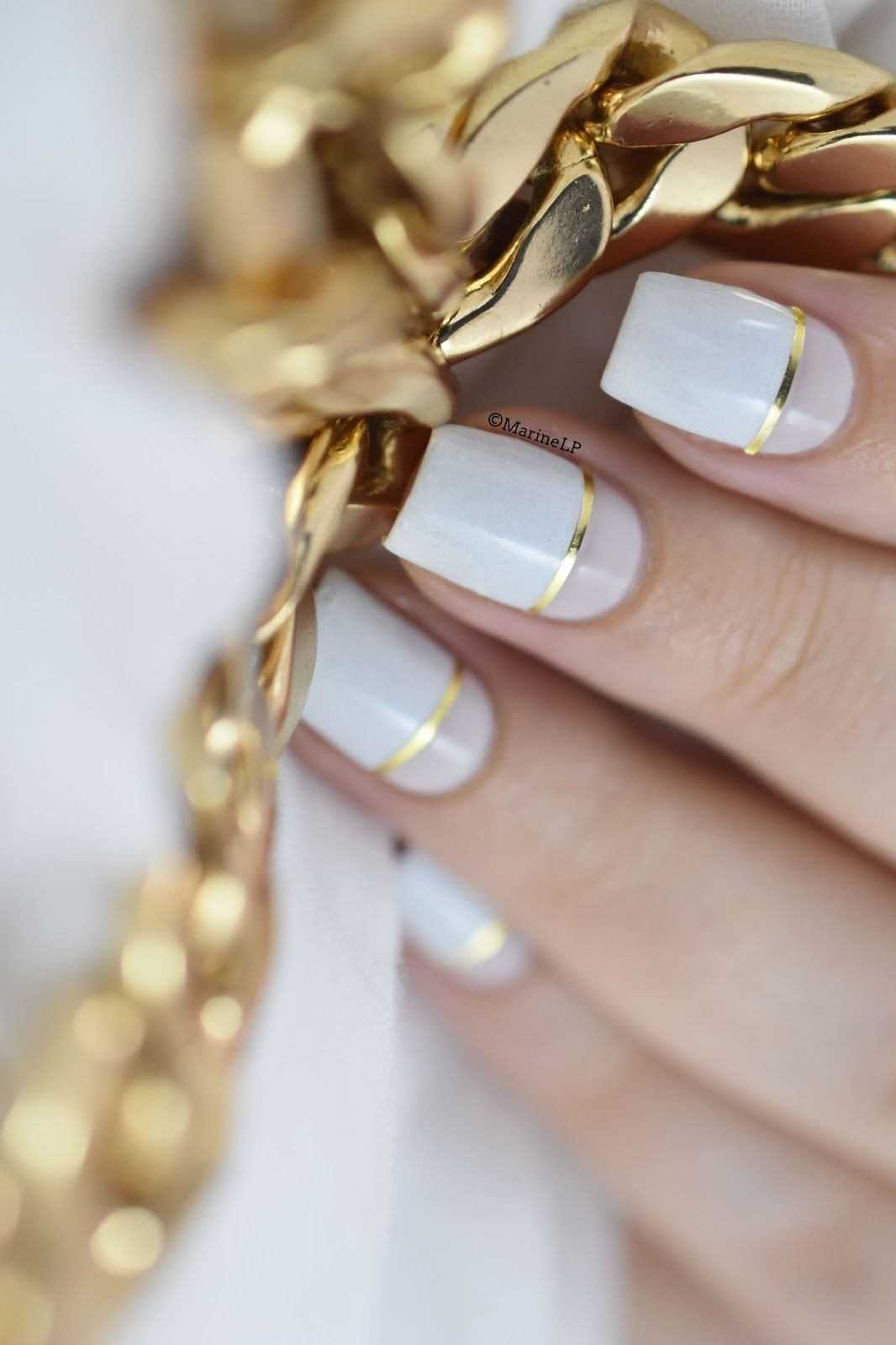 #4 Маникюр молочного цвета с золотом